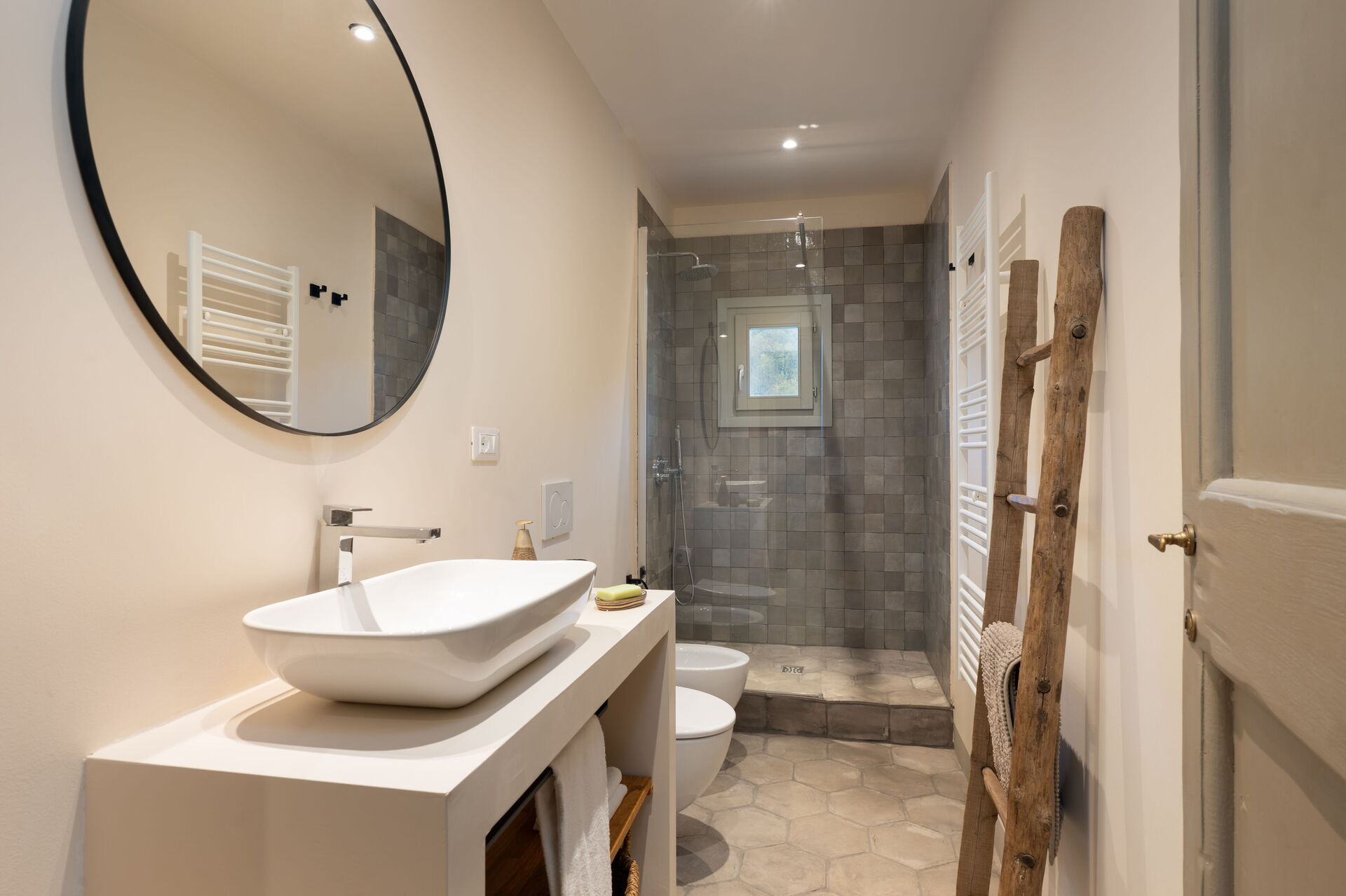 On the first floor: 5 double bedrooms (beds can be divided into singles upon request) each with satellite TV, 3 bathrooms with shower (wc, bidet), storage room.