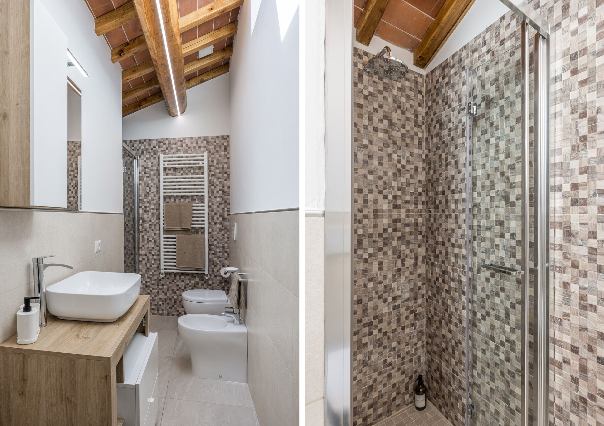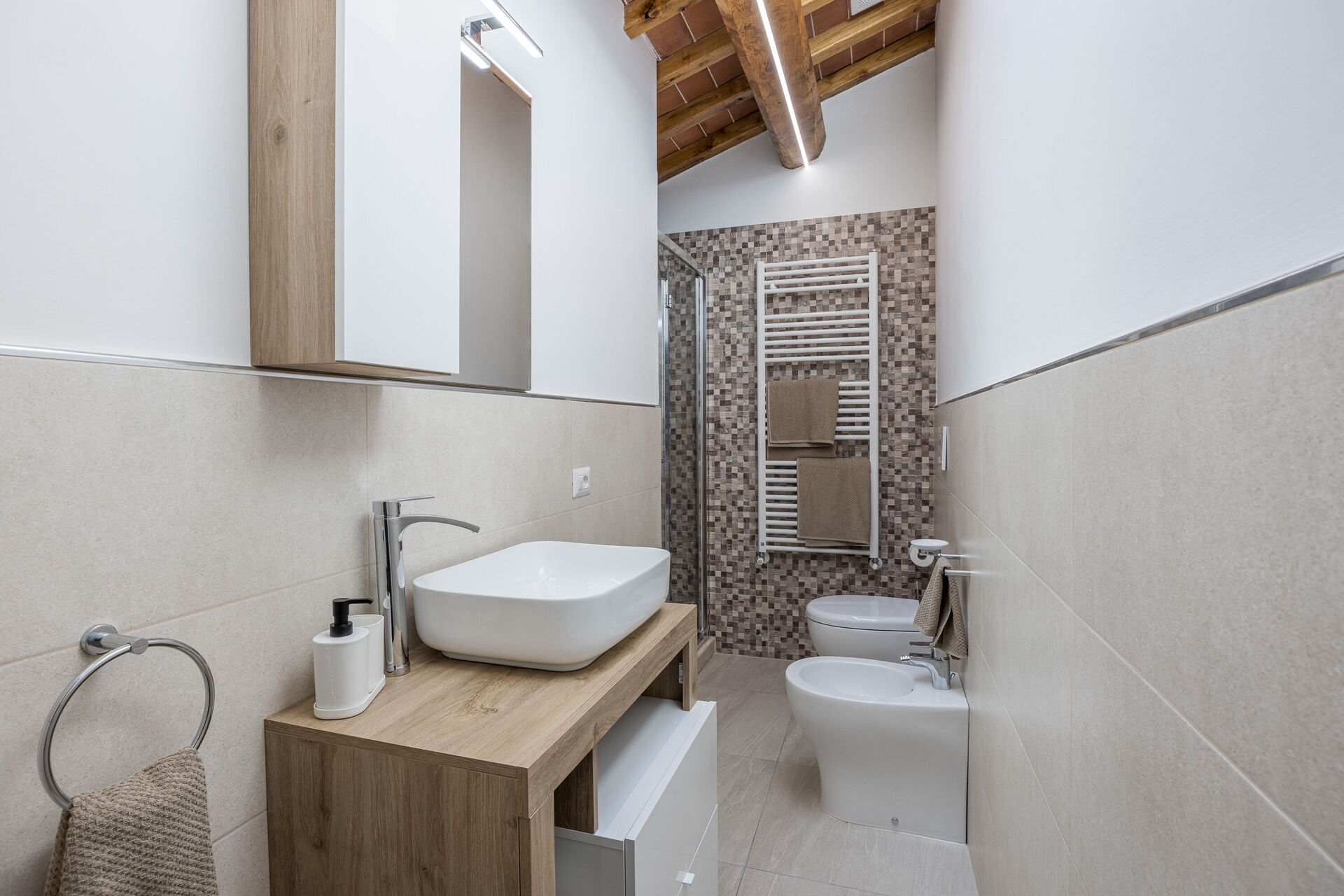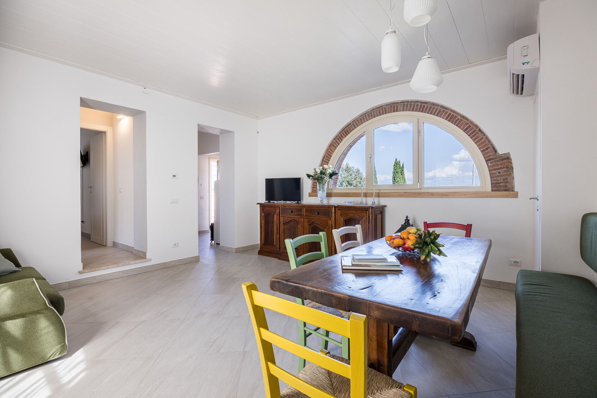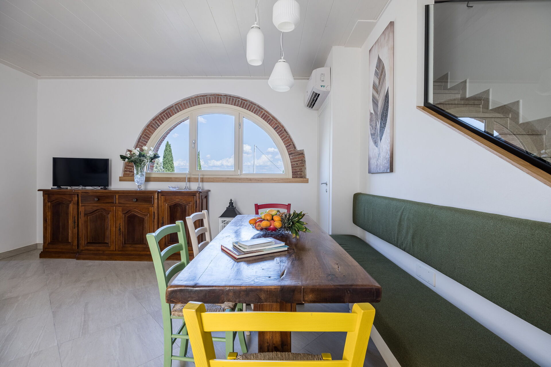 The house is arranged over two floors and is ideal for families and small groups looking for a relaxing holiday in Tuscany. On the ground floor: fully equipped kitchen, bright living room with dining area, twin bedroom with two single beds, bathroom with shower, and convenient laundry room. On the first floor: elegant double bedroom and a second bathroom with shower.