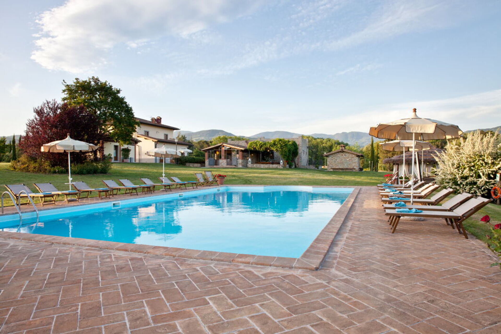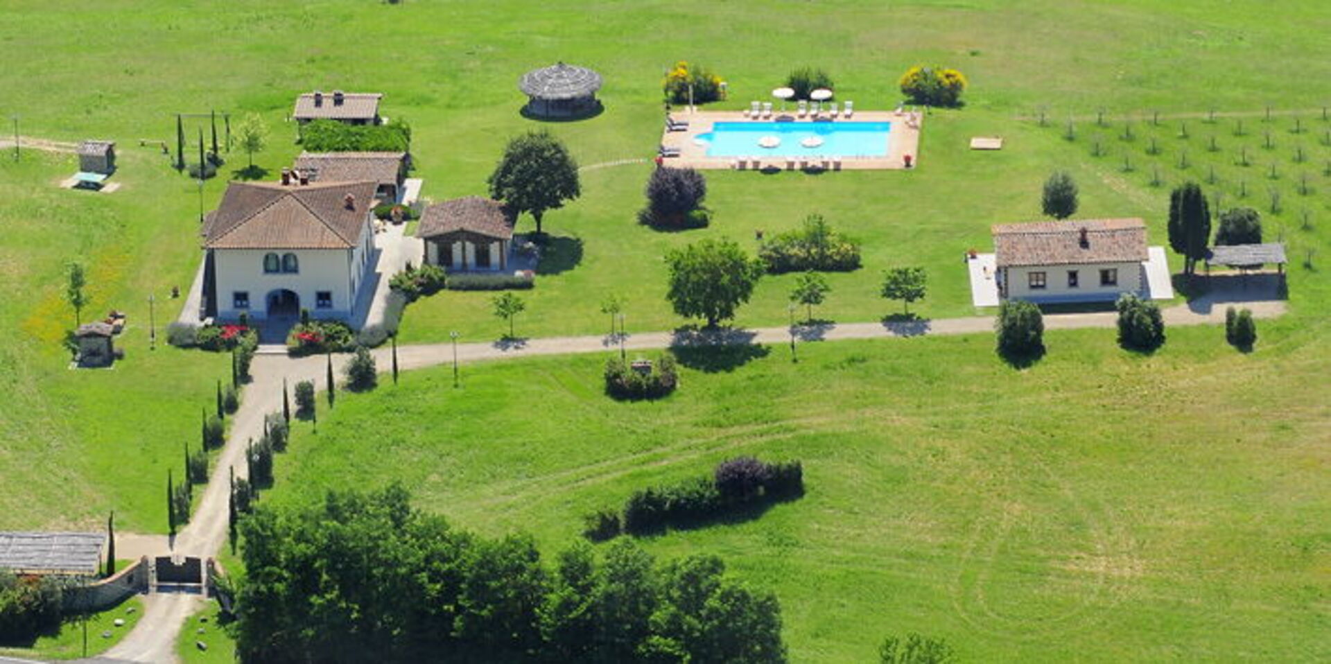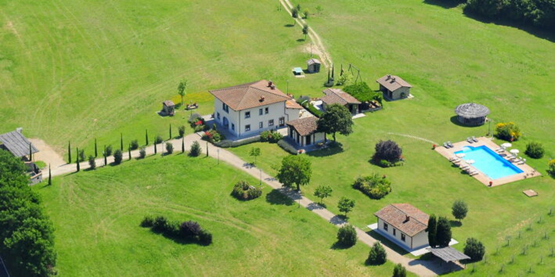 It is surrounded by a large garden where the swimming pool is located (16 meters long x 8 meters wide) and from which, through a path inside the estate, you can also reach a pretty and picturesque lake. Not far away you will also find a tennis court. It will be magical for you to embark on a trekking path inside the tall forest that will kidnap you, as in a fairy tale, during your excursions. This country residence, in addition to offering an extremely relaxing holiday, is the ideal starting point for visiting important artistic and cultural centers in the area: Arezzo is less than half an hour by car, Siena and Florence a little less. one hour.