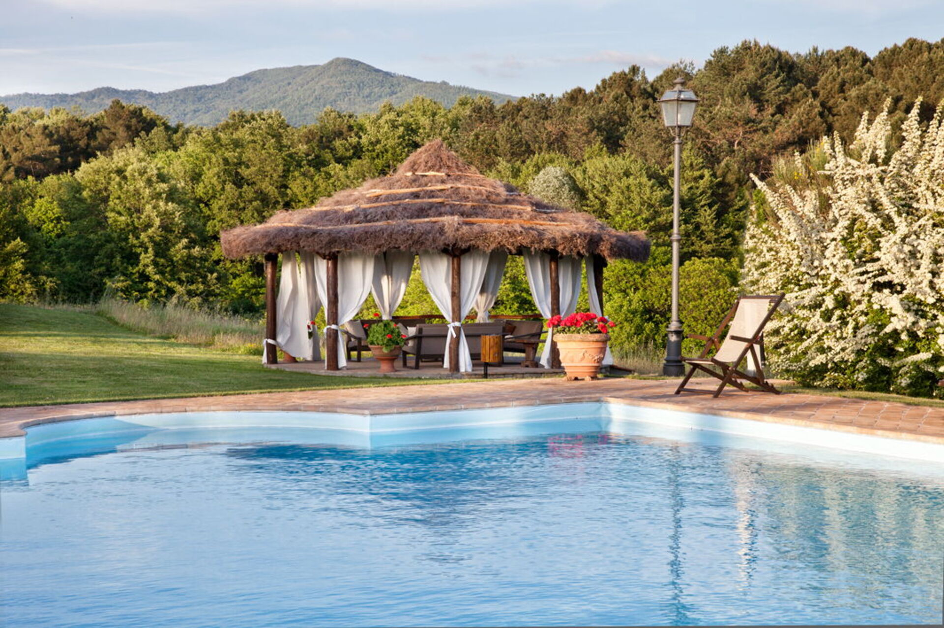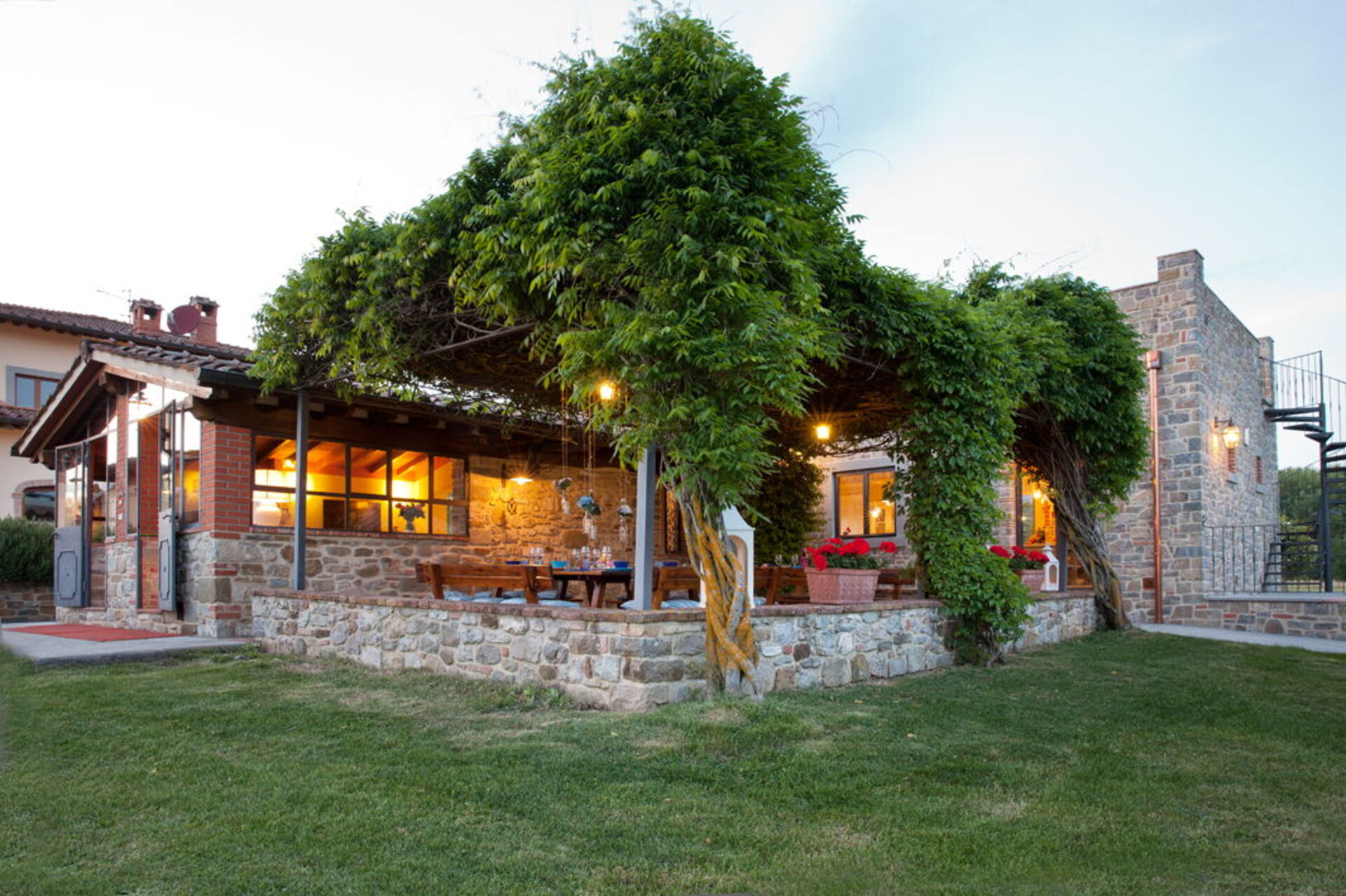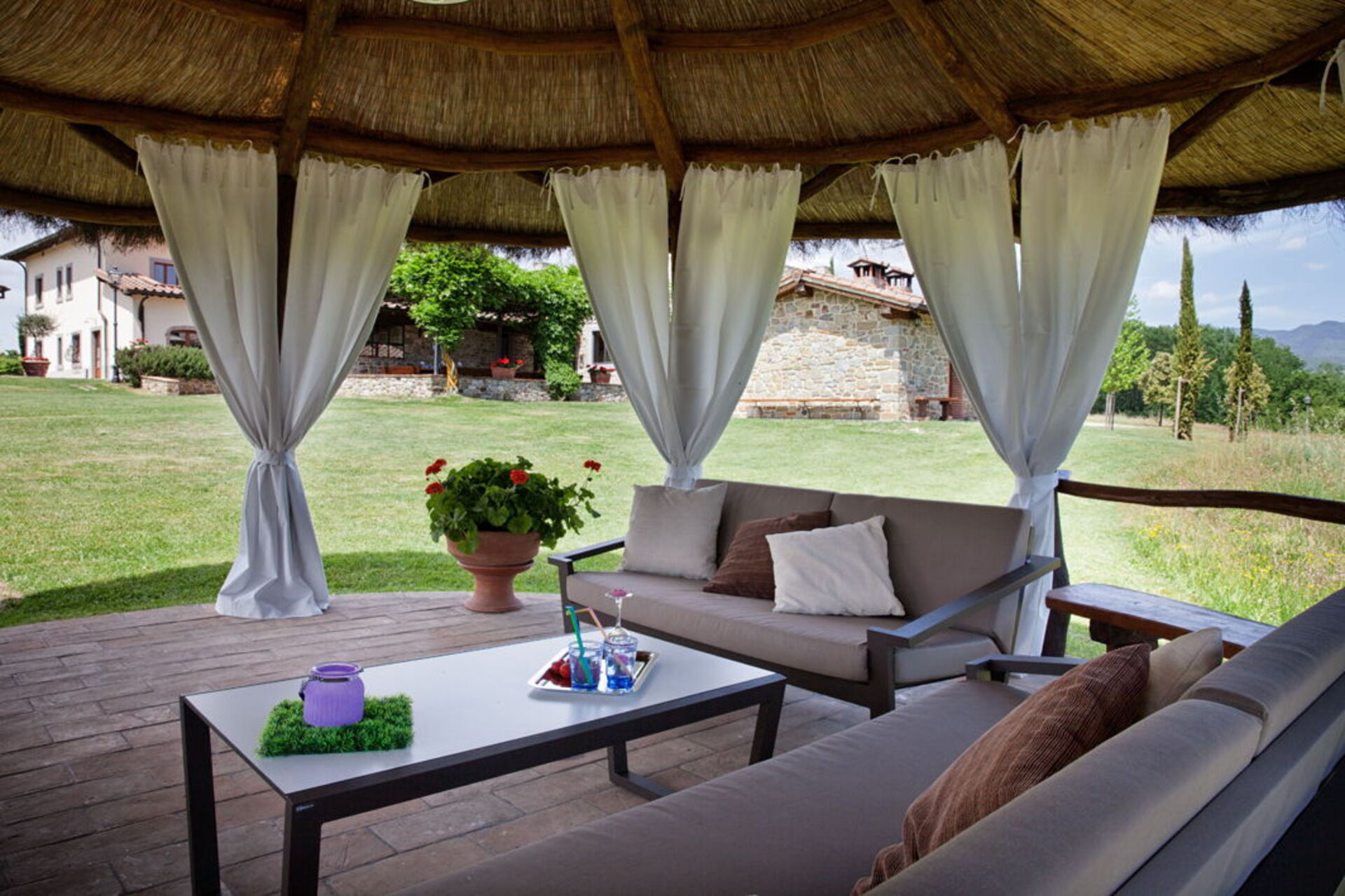 It is surrounded by a large garden where the swimming pool is located (16 meters long x 8 meters wide) and from which, through a path inside the estate, you can also reach a pretty and picturesque lake. Not far away you will also find a tennis court. It will be magical for you to embark on a trekking path inside the tall forest that will kidnap you, as in a fairy tale, during your excursions. This country residence, in addition to offering an extremely relaxing holiday, is the ideal starting point for visiting important artistic and cultural centers in the area: Arezzo is less than half an hour by car, Siena and Florence a little less. one hour.