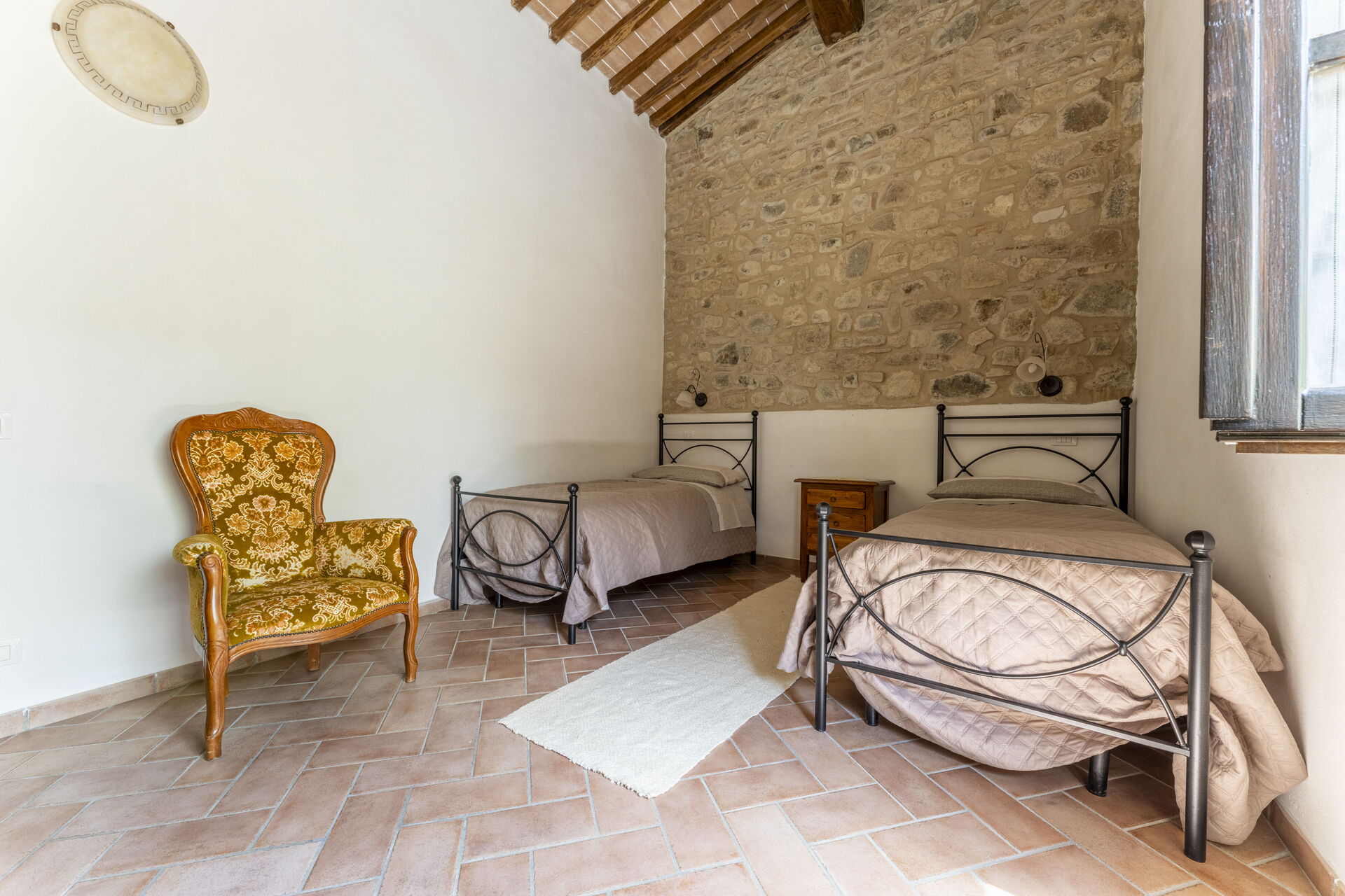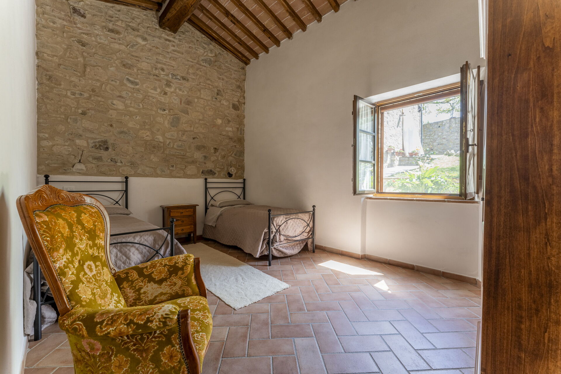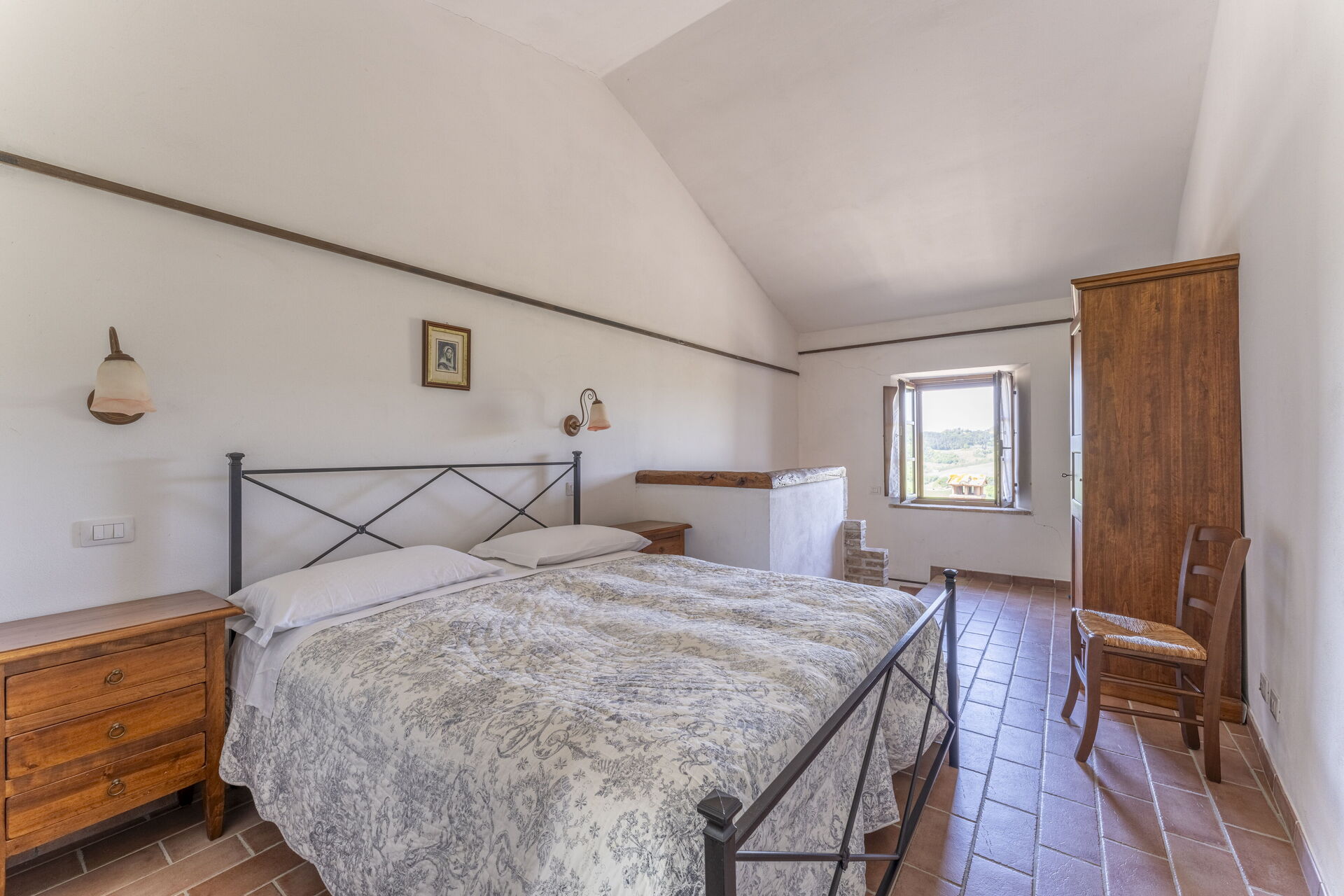 Attached you will find on the ground floor a small living room furnished with an armchair and small table, while on the first floor is the sleeping area with the double bedroom and a bathroom with shower.