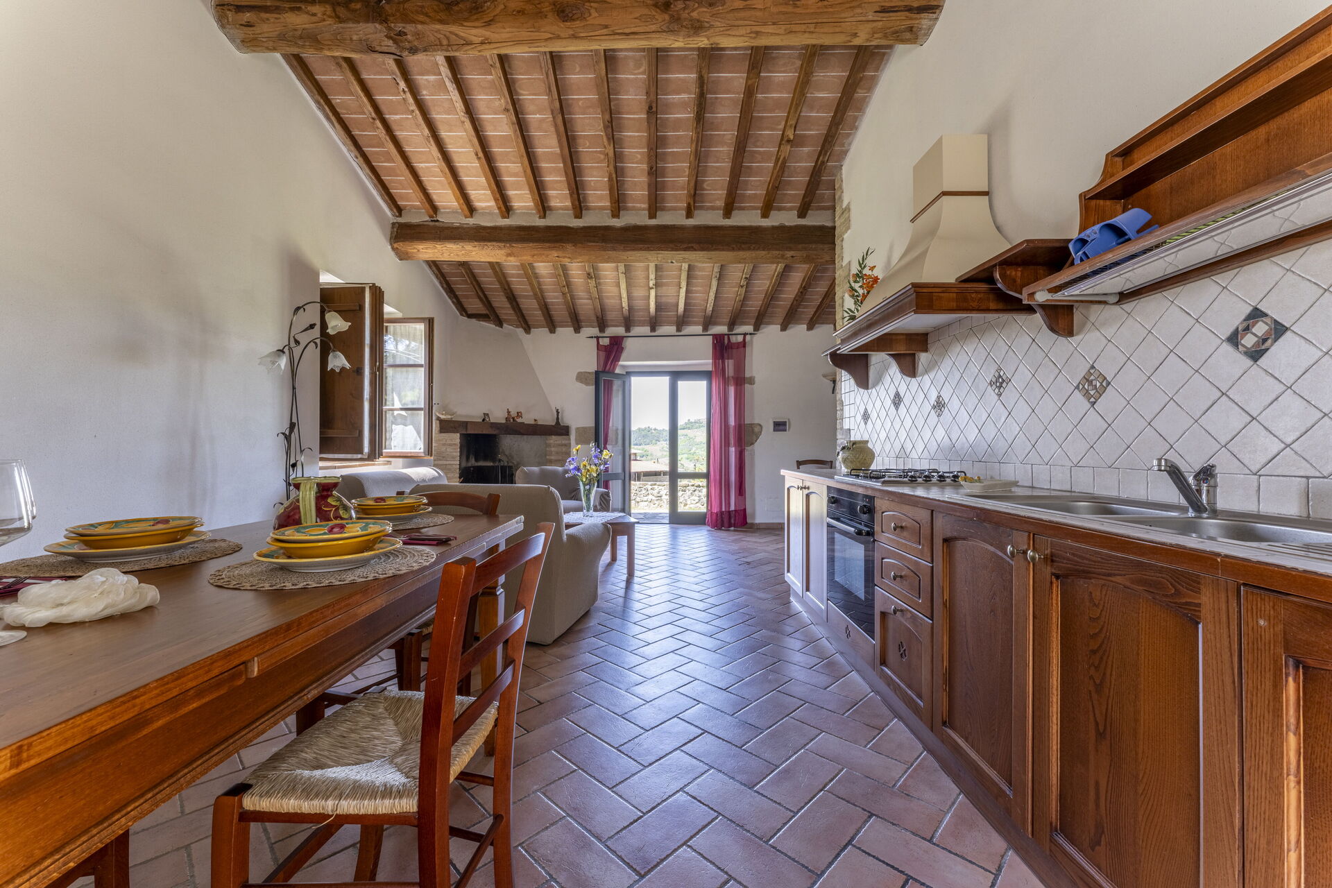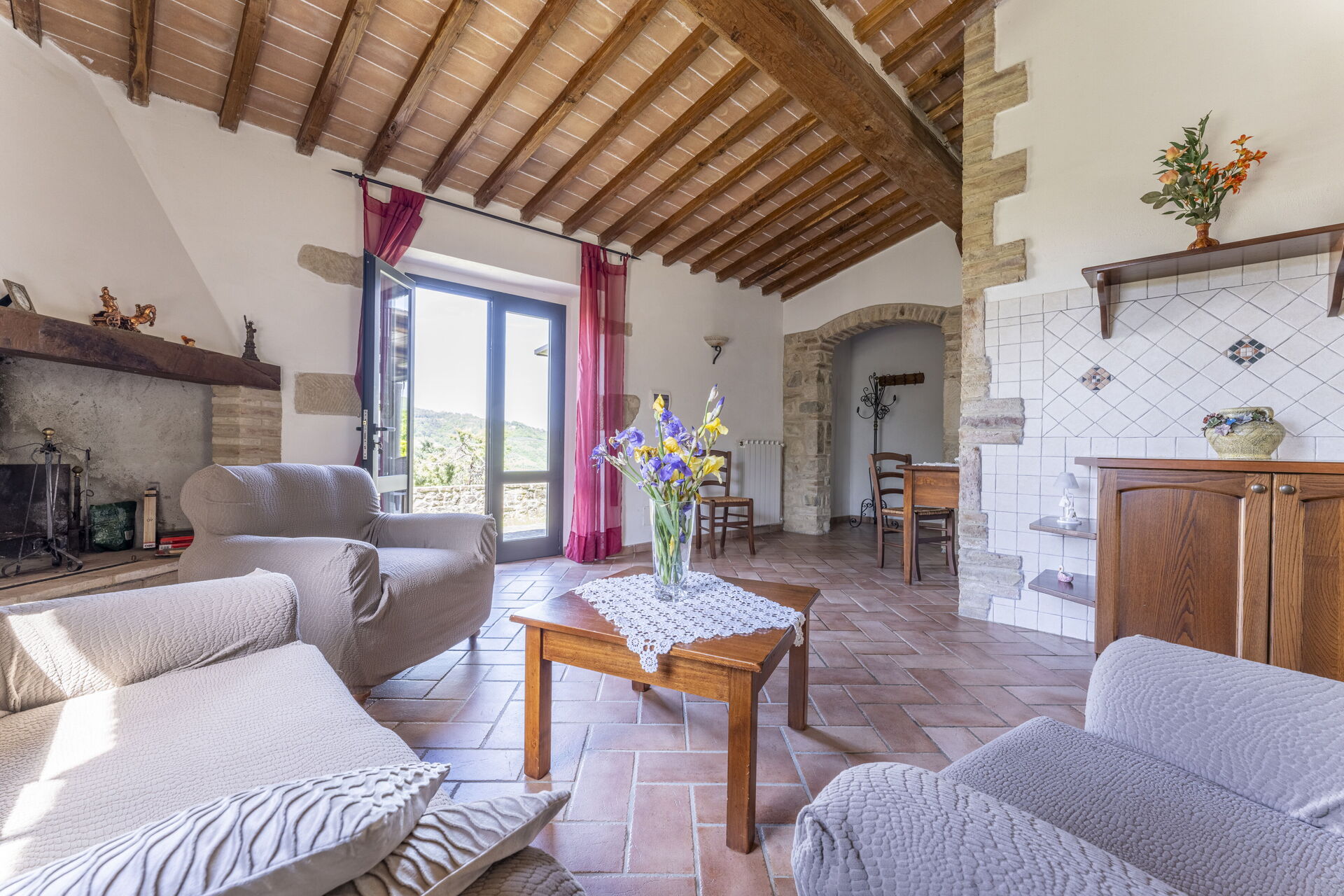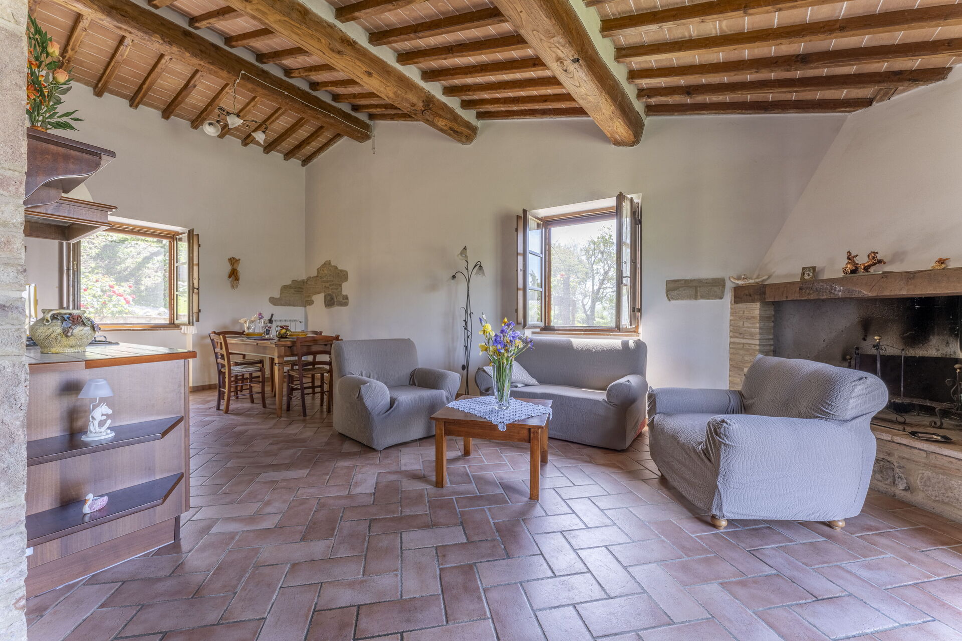 Fireplace, Well Equipped Kitchen, Sofa, Oven, Freezer, Fridge, WiFi Internet, Dishwasher, Italian Coffee Machine, Dining Table, Exit to the garden