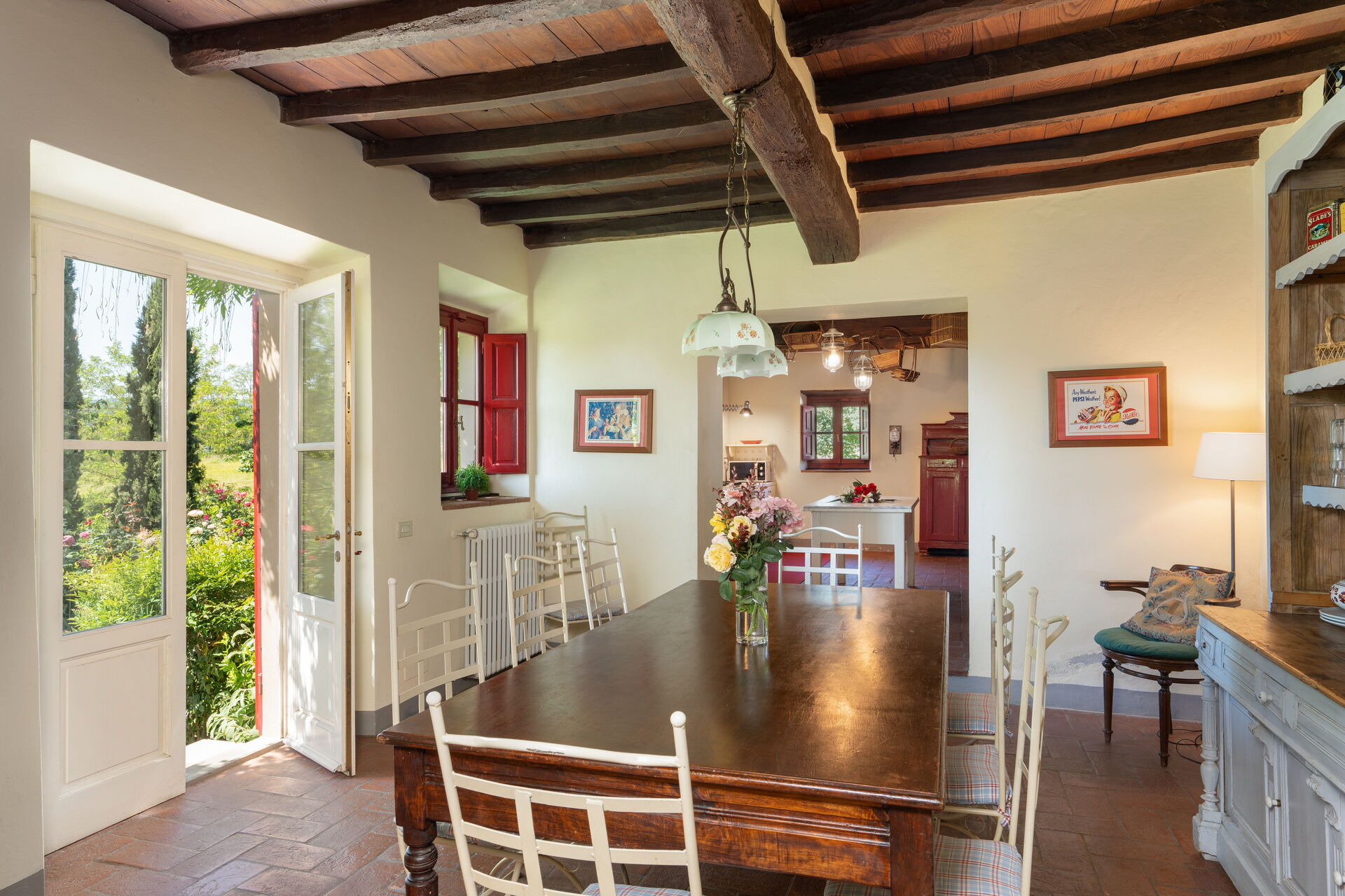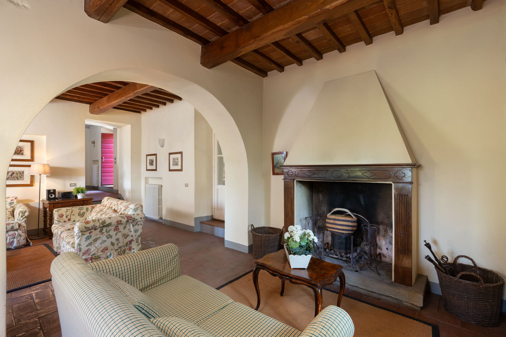 Beautiful farmhouse in the country, recently renovated maintaining and enhancing the rustic style, on two floors, has a nice furnishings with some antique furniture. The property is located in a panoramic position overlooking the green valley of Mugello, near Florence. The house has a beautiful fenced garden of 4.500mq. equipped with pool for exclusive use of the guests (12m. x 5m. prof. 110/210 cm.) and equipped with a nice pergola for outdoor dining with barbecue. Wi-Fi free. Private parking in the property.