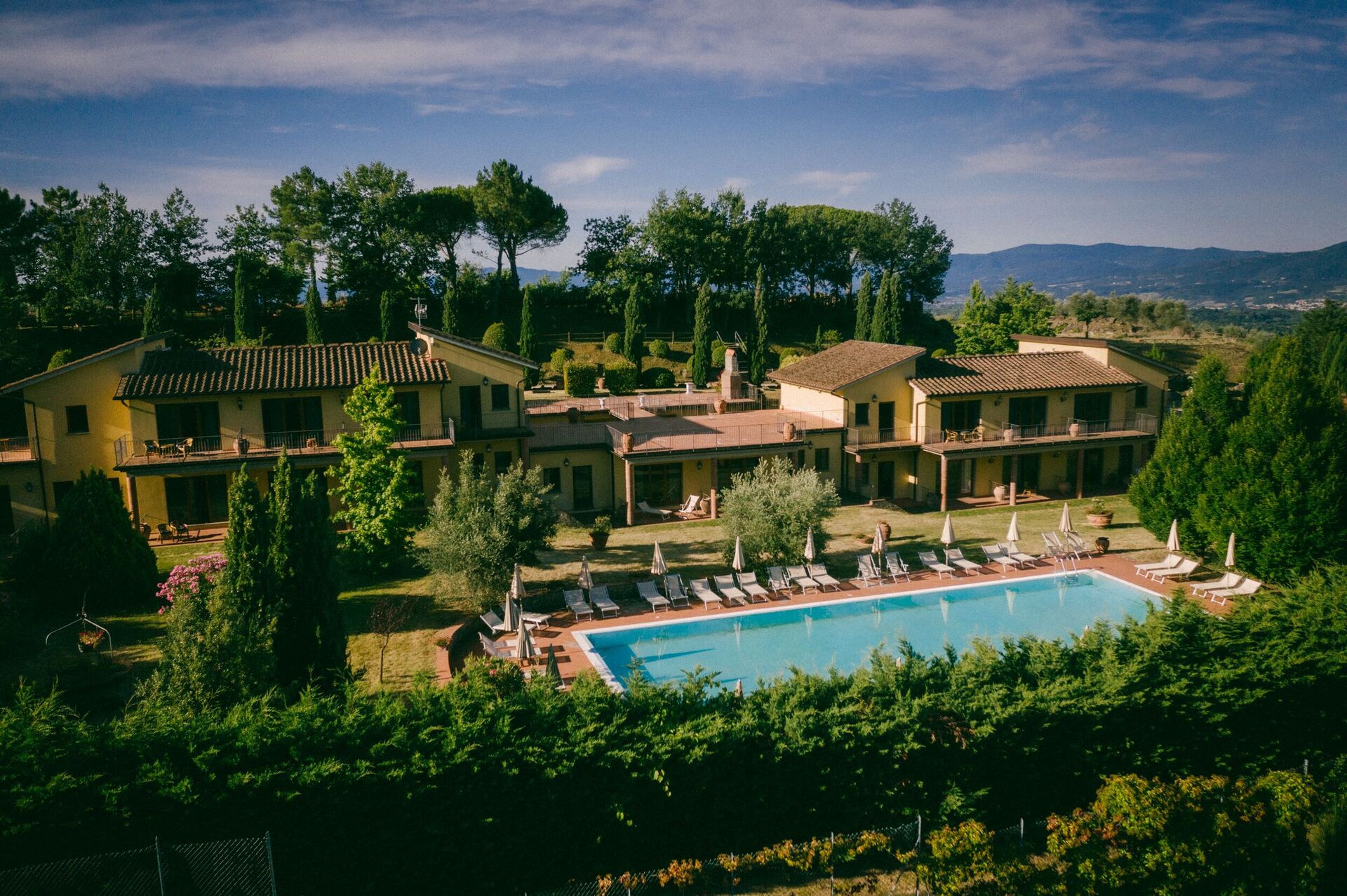 La Piazza di San Donato, built by the monks of Vallombrosa in the 15th century, is located in the town of Reggello on the slopes of the Pratomagno massif, like a balcony looking out over the marvellous Valdarno and Chianti landscapes. This privileged position is the perfect staging point for visits to Tuscany’s major art cities – Florence, Siena, San Gimignano, Arezzo, Certaldo, Cortona – and the entire Chianti region.