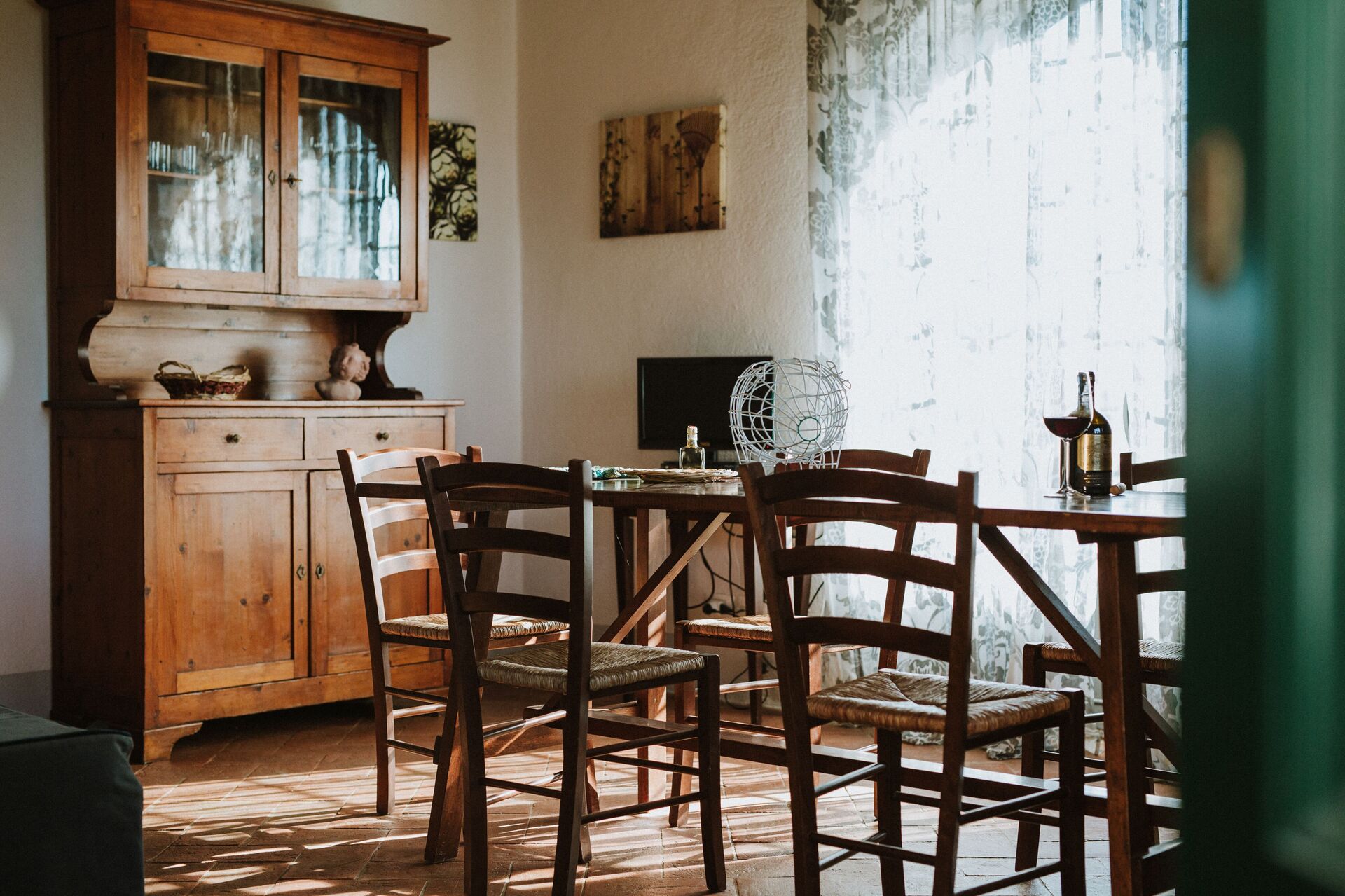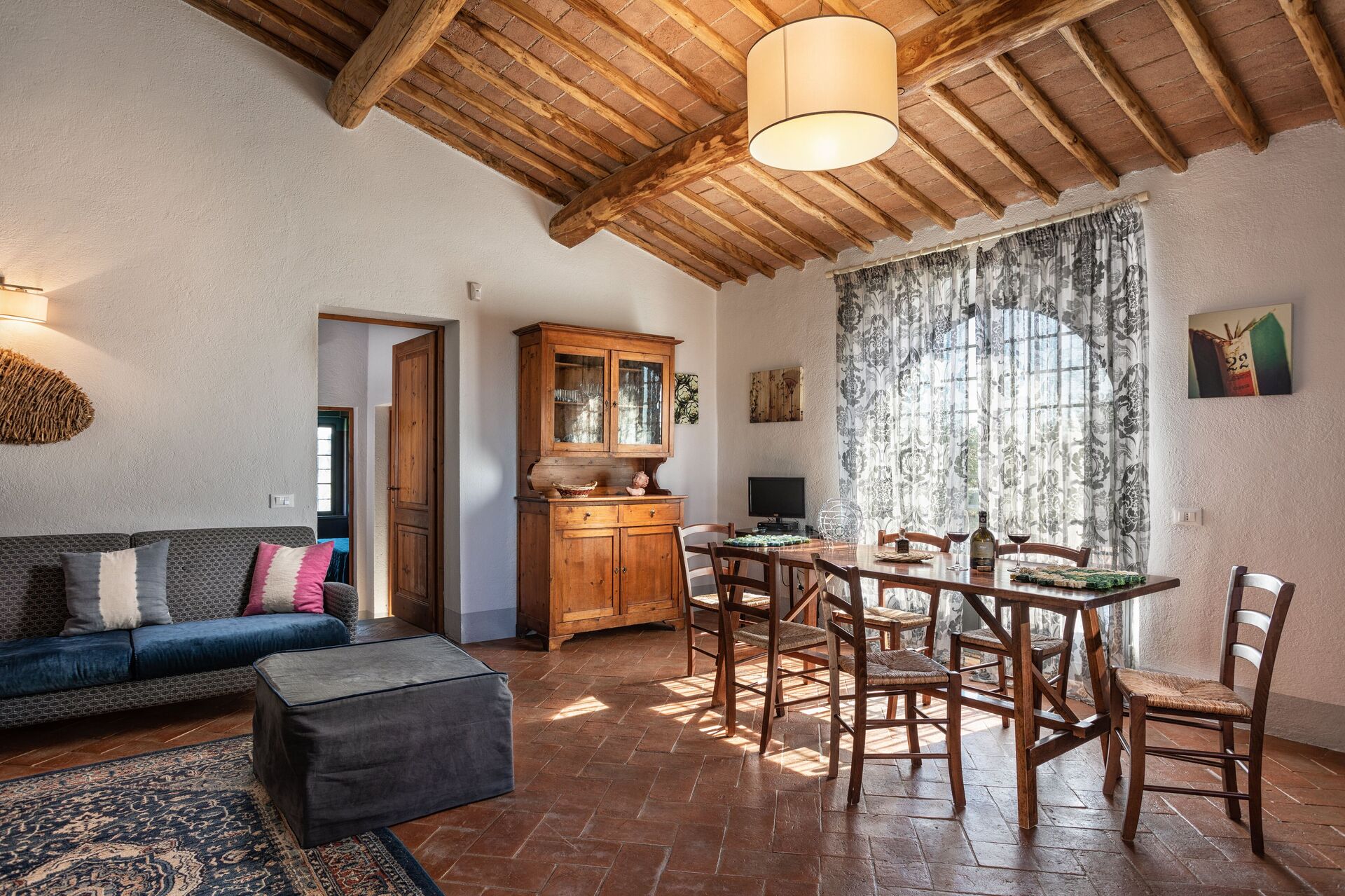 Mirtus is an apartment for eight people located inside the Agriturismo La Papessa in San Donato, with independent entrance, consisting of a large kitchen living room with a sofa bed, two bedrooms with double beds and a bathroom with shower on the ground floor.