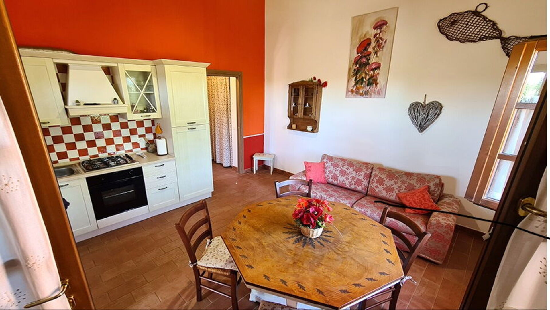 Nestled in the peaceful Tuscan countryside, this farmhouse was created from the skilful restoration of a historic manor house, now divided into five welcoming independent apartments. The property, a 6.5-hectare family-run farm, is mainly cultivated with olive groves, orchards and cereals, while the vegetable garden and farmyard animals keep alive a rural tradition handed down through generations.