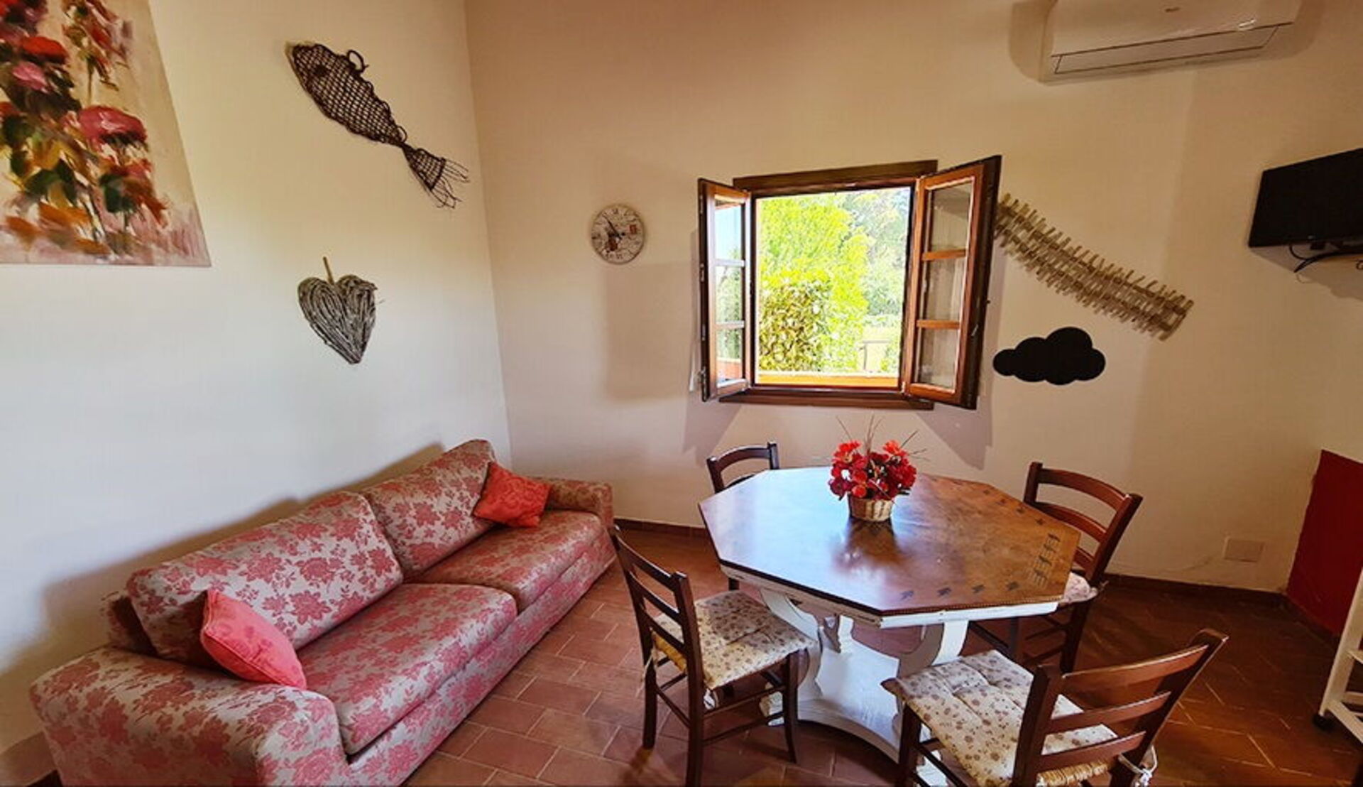 The apartment is comfortable and functional and also features a TV and air conditioning.