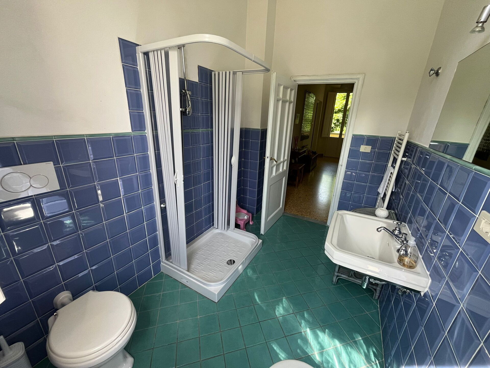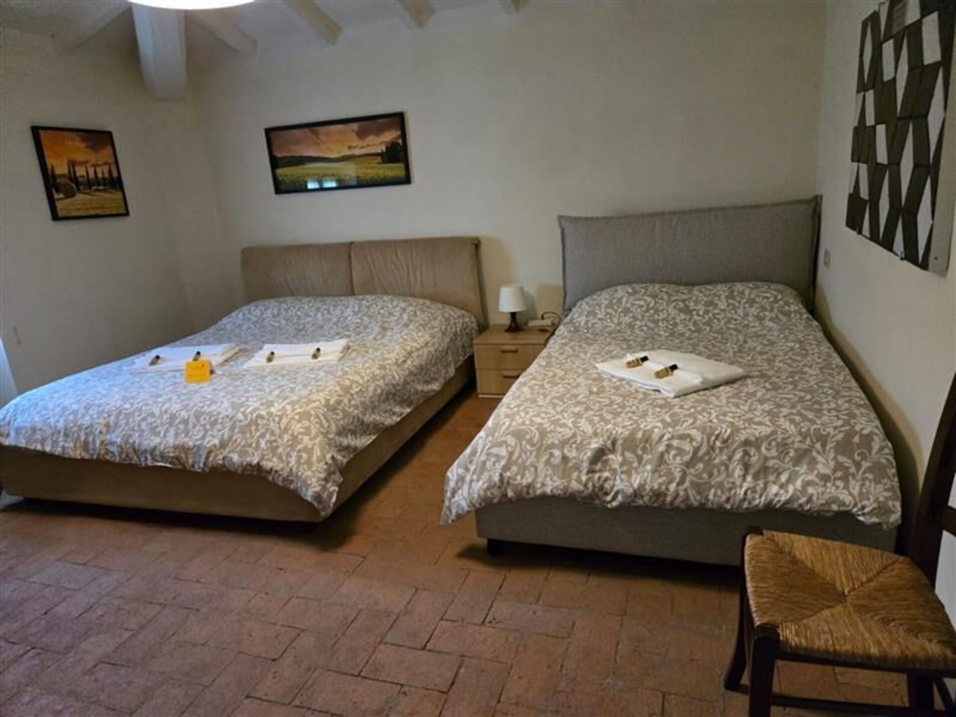 On the first floor: 1 bedroom with double bed; 1 bedroom with one double and one single bed; 1 bedroom with three single beds; 2 bathrooms with shower (wc/bidet).