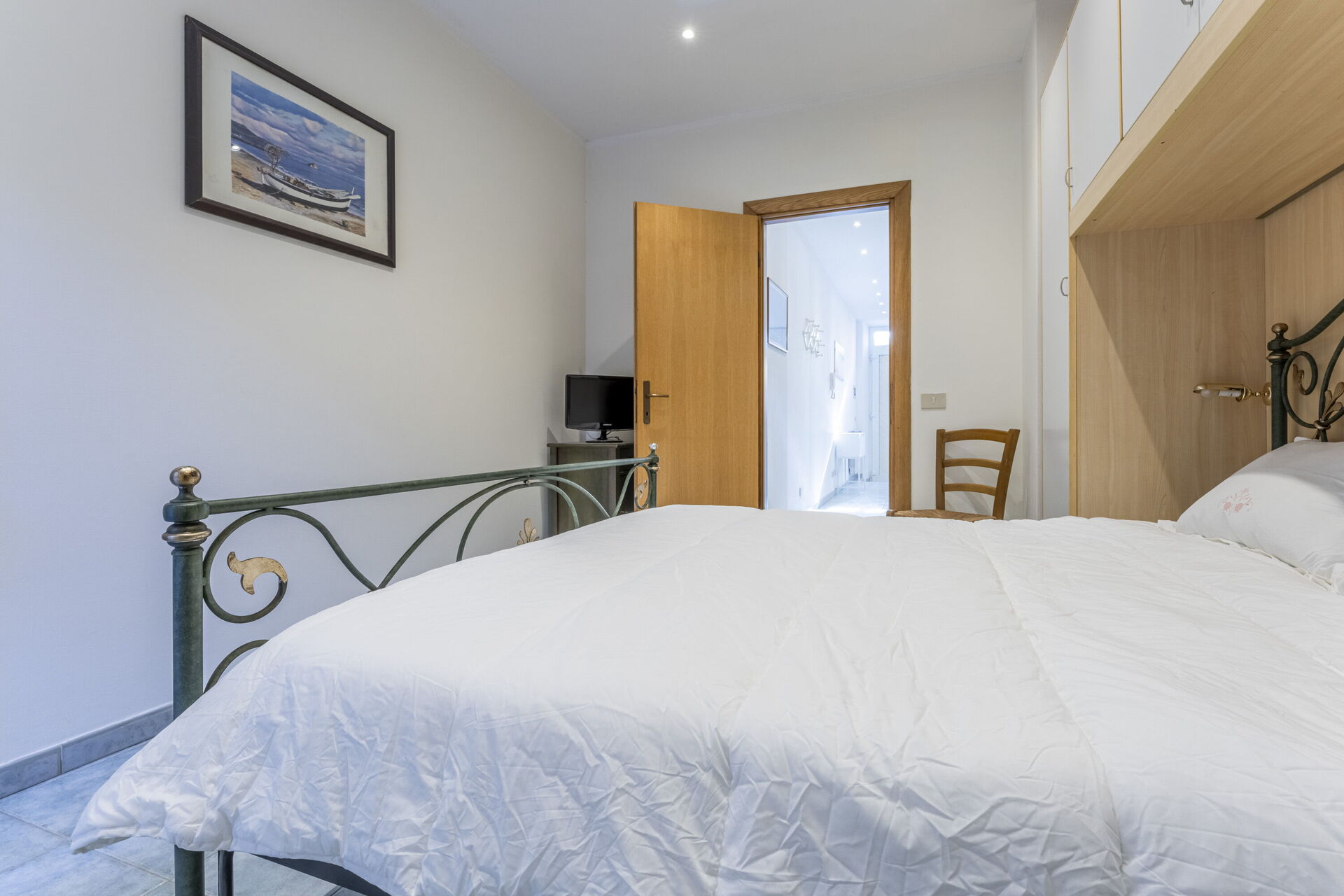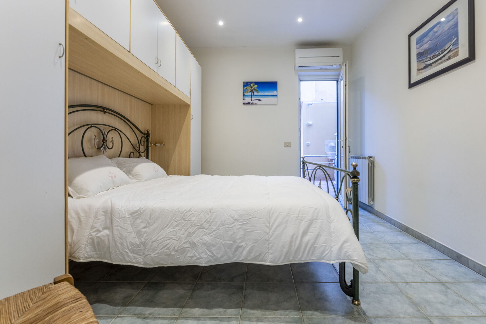 Inside the flat, with its own entrance located on the ground floor, you will find a cosy air-conditioned living area with a living room with sofa and television, a dining table and a well-equipped kitchen. There is a double bedroom with air conditioning and a bathroom with shower.