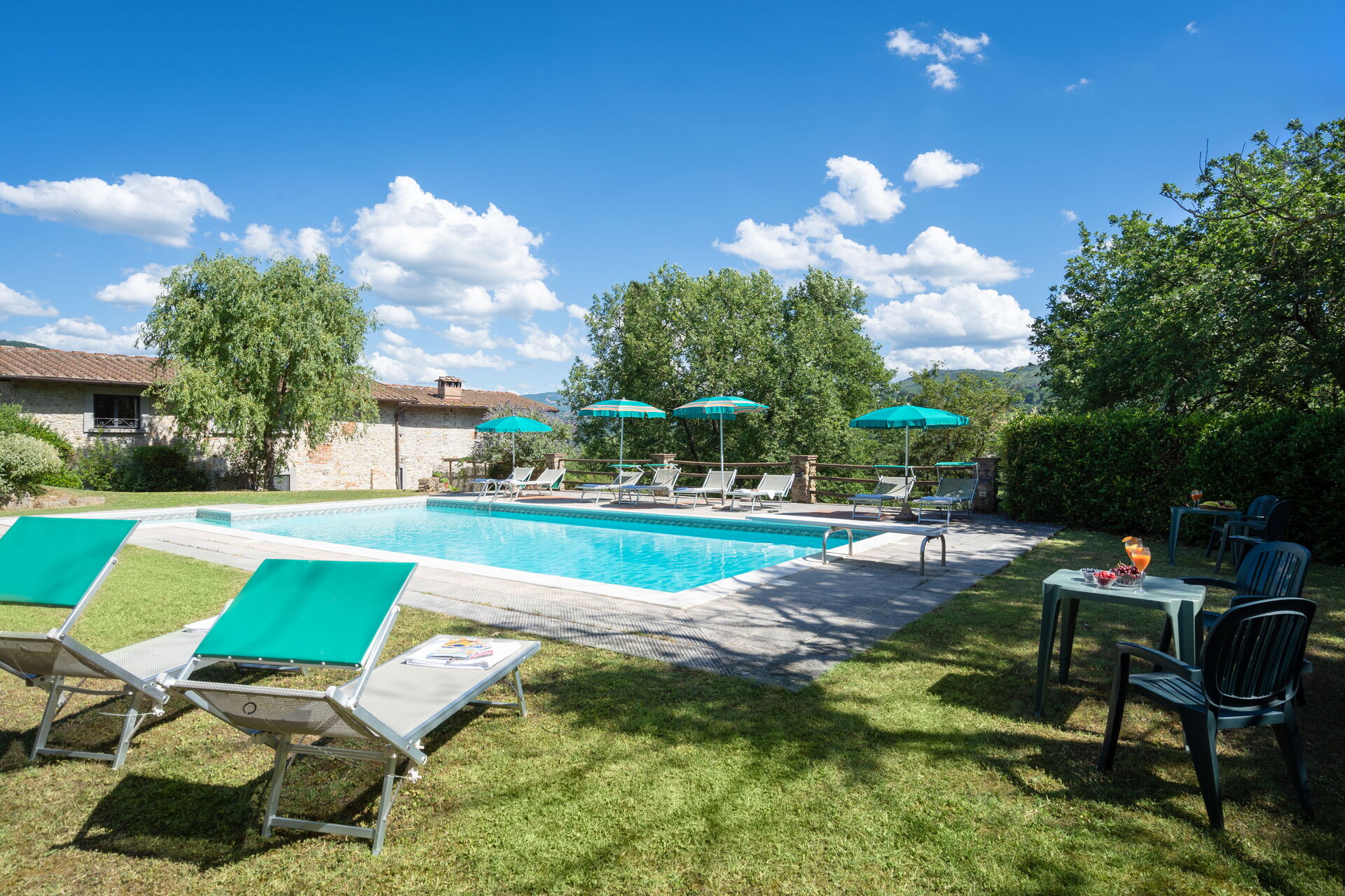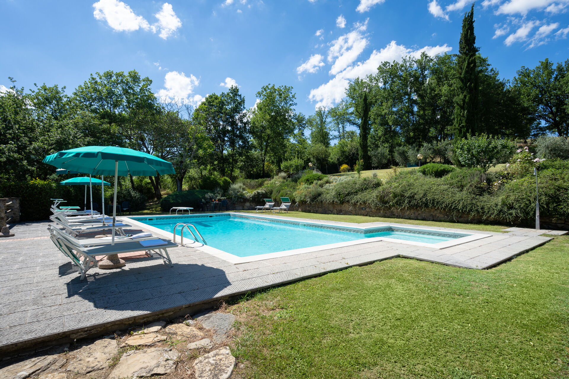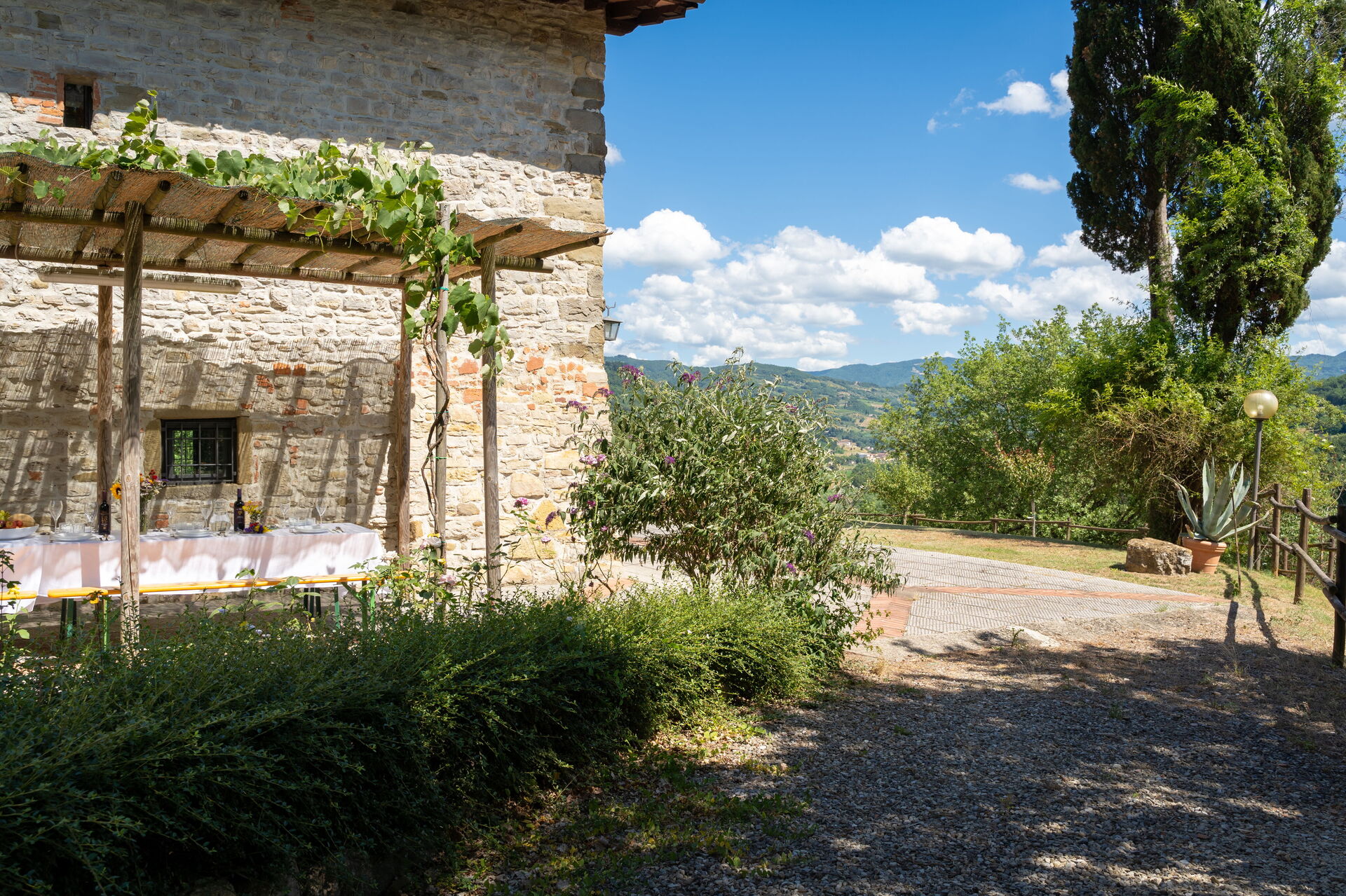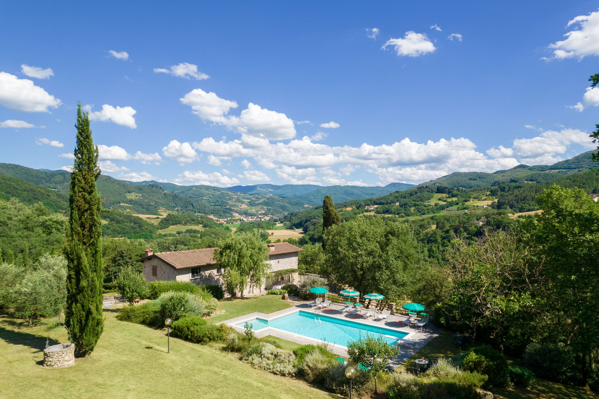 Beautiful farmhouse of 360mq., located in the green hills of Mugello between Vicchio and Dicomano and lovingly restored in 2008. Large panoramic view of the valley. The property is fenced and equipped with electric gate. The private and well-kept garden of about 2 hectares, is equipped with a children's pool (3x3, prof. 75cm), inserted in the main pool (6m. x 12m. Prof. 120cm. To 240cm.). The property also has a nice pergola for outdoor dining (barbecue). Private parking within the grounds of the property and a charging station for electric vehicles. Wi-Fi free. The villa is located at 4.5km. from the center of "Dicomano", at 38km. from Florence, at 5km away. from Vicchio (birthplace of Giotto and Fra Angelico), at 25km. from the "Barberino Designer Outlet" (over 100 stores of major brands of Italian and international fashion) and Lake "Bilancino (canoe, sailing, windsurfing), at 17km. from the "Poggio dei Medici Golf Club".