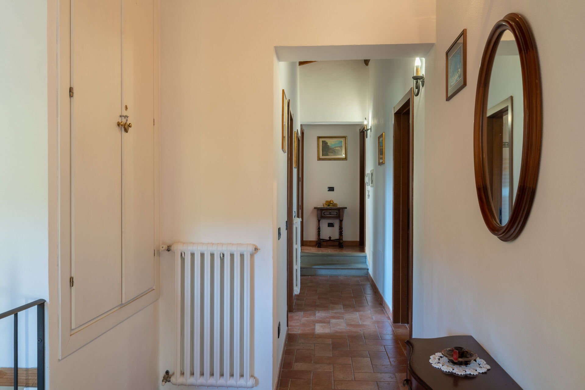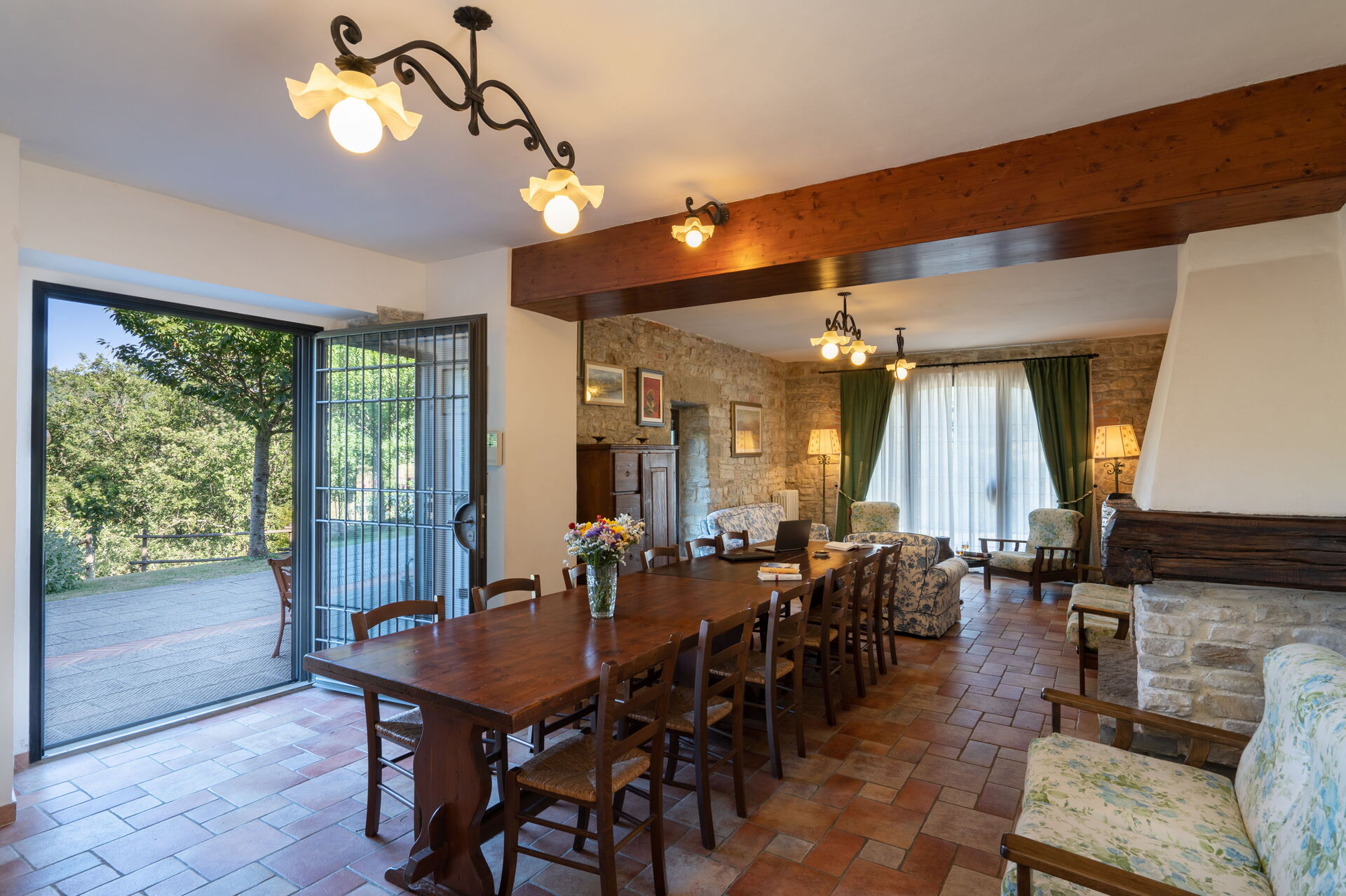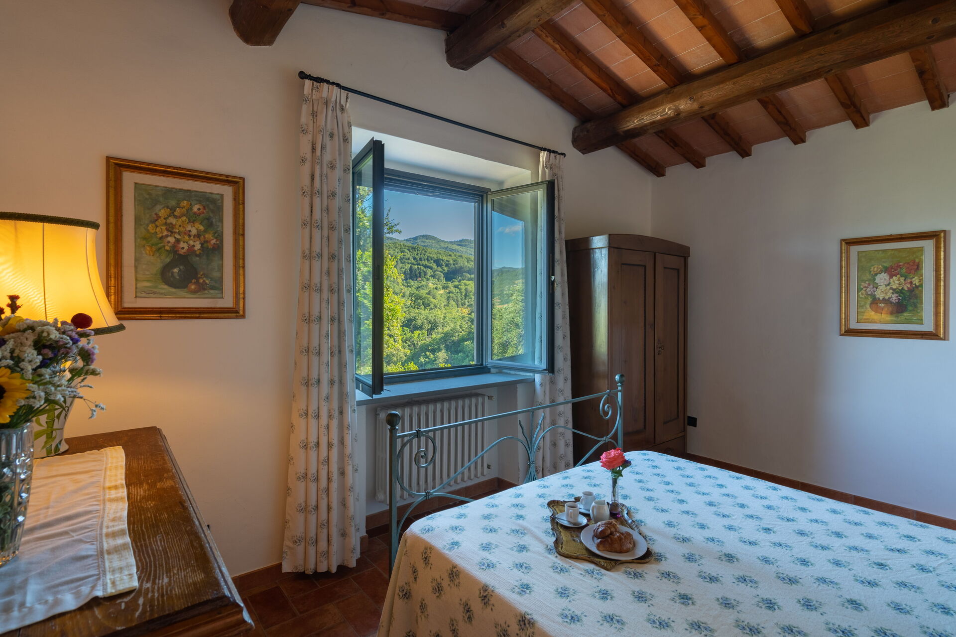 Beautiful farmhouse of 360mq., located in the green hills of Mugello between Vicchio and Dicomano and lovingly restored in 2008. Large panoramic view of the valley. The property is fenced and equipped with electric gate. The private and well-kept garden of about 2 hectares, is equipped with a children's pool (3x3, prof. 75cm), inserted in the main pool (6m. x 12m. Prof. 120cm. To 240cm.). The property also has a nice pergola for outdoor dining (barbecue). Private parking within the grounds of the property and a charging station for electric vehicles. Wi-Fi free. The villa is located at 4.5km. from the center of "Dicomano", at 38km. from Florence, at 5km away. from Vicchio (birthplace of Giotto and Fra Angelico), at 25km. from the "Barberino Designer Outlet" (over 100 stores of major brands of Italian and international fashion) and Lake "Bilancino (canoe, sailing, windsurfing), at 17km. from the "Poggio dei Medici Golf Club".
