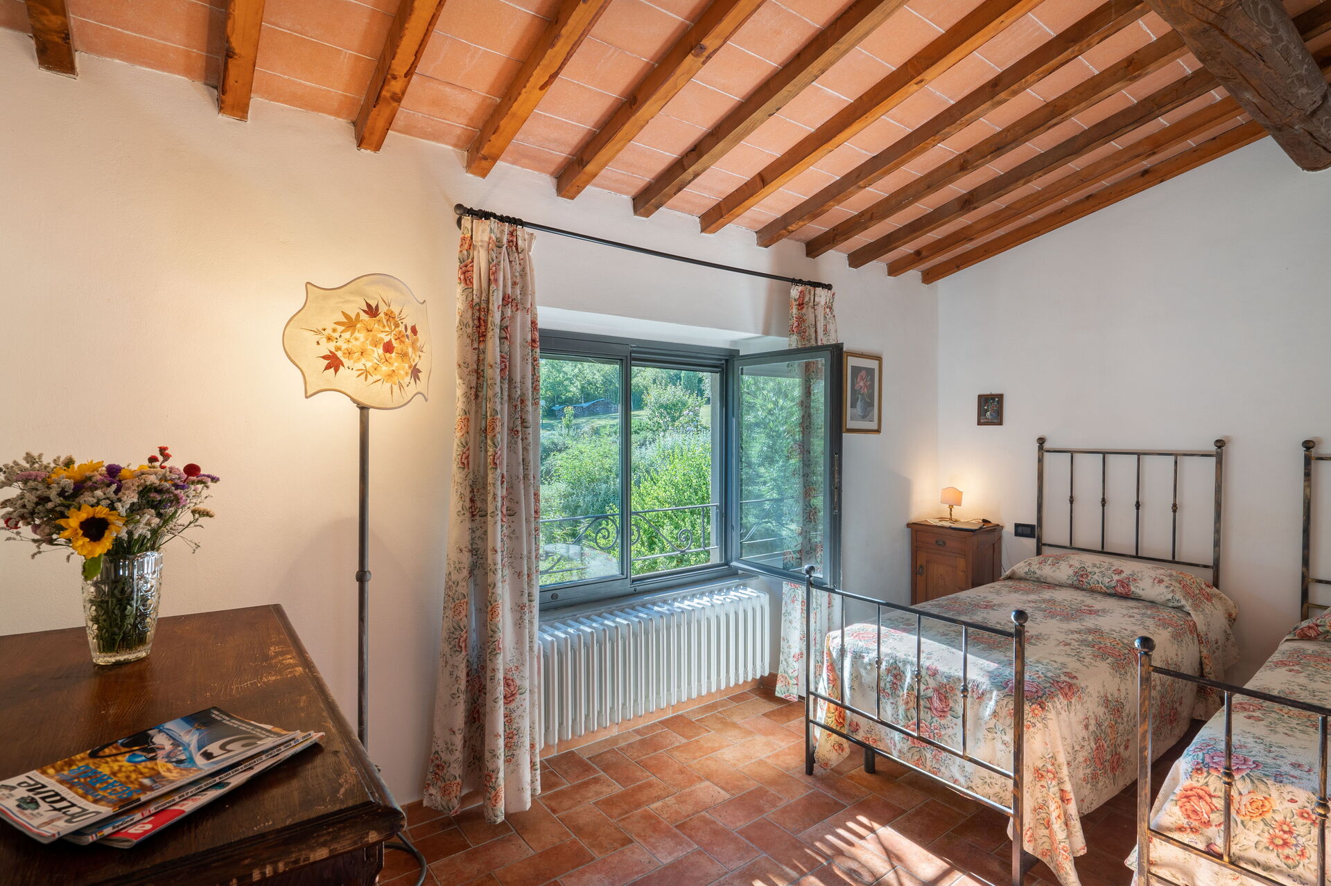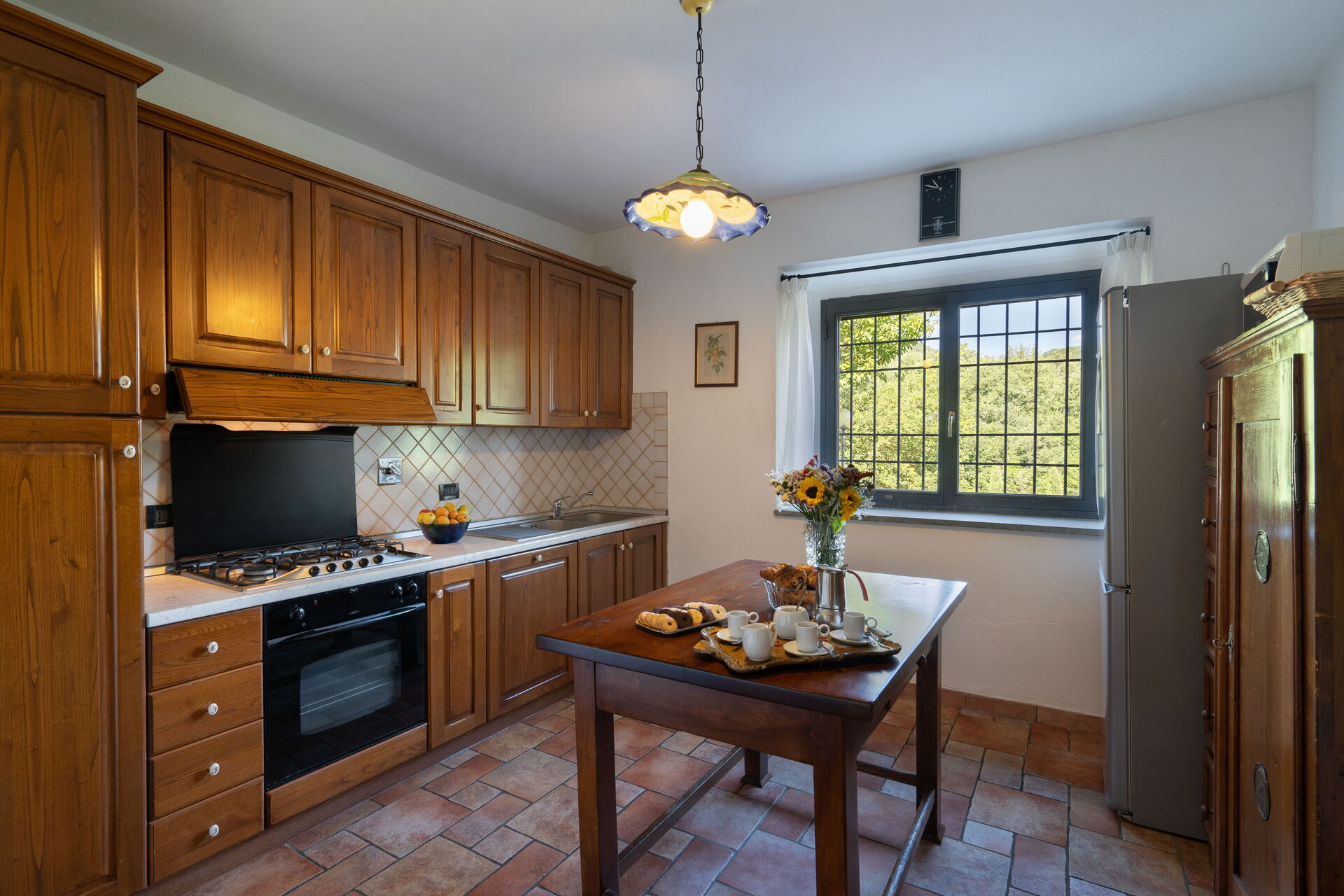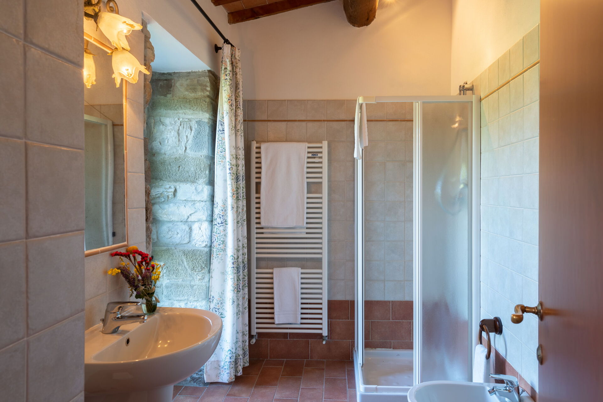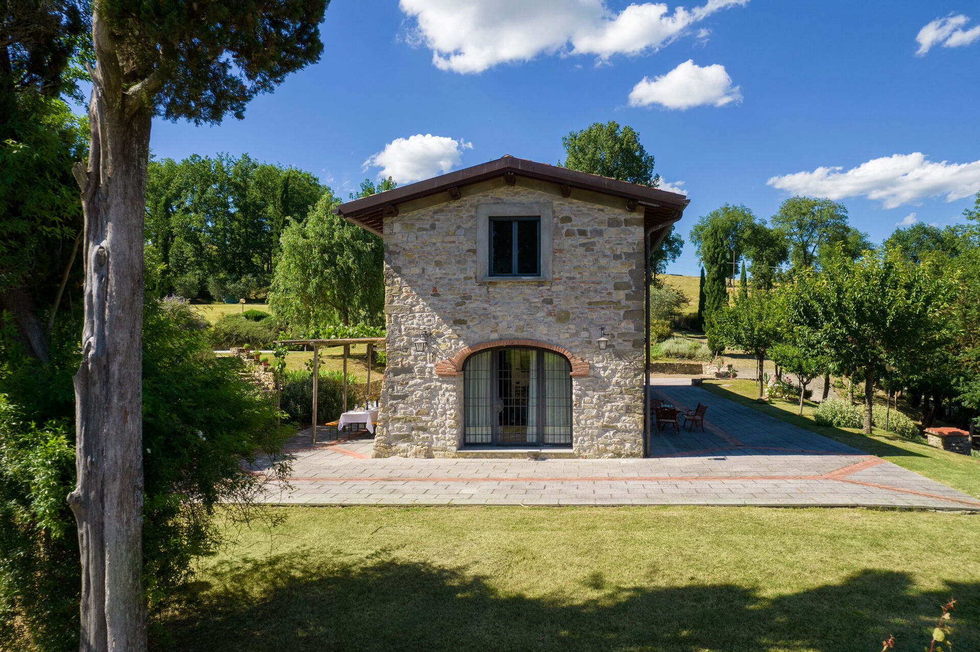 Beautiful farmhouse of 360mq., located in the green hills of Mugello between Vicchio and Dicomano and lovingly restored in 2008. Large panoramic view of the valley. The property is fenced and equipped with electric gate. The private and well-kept garden of about 2 hectares, is equipped with a children's pool (3x3, prof. 75cm), inserted in the main pool (6m. x 12m. Prof. 120cm. To 240cm.). The property also has a nice pergola for outdoor dining (barbecue). Private parking within the grounds of the property and a charging station for electric vehicles. Wi-Fi free. The villa is located at 4.5km. from the center of "Dicomano", at 38km. from Florence, at 5km away. from Vicchio (birthplace of Giotto and Fra Angelico), at 25km. from the "Barberino Designer Outlet" (over 100 stores of major brands of Italian and international fashion) and Lake "Bilancino (canoe, sailing, windsurfing), at 17km. from the "Poggio dei Medici Golf Club".