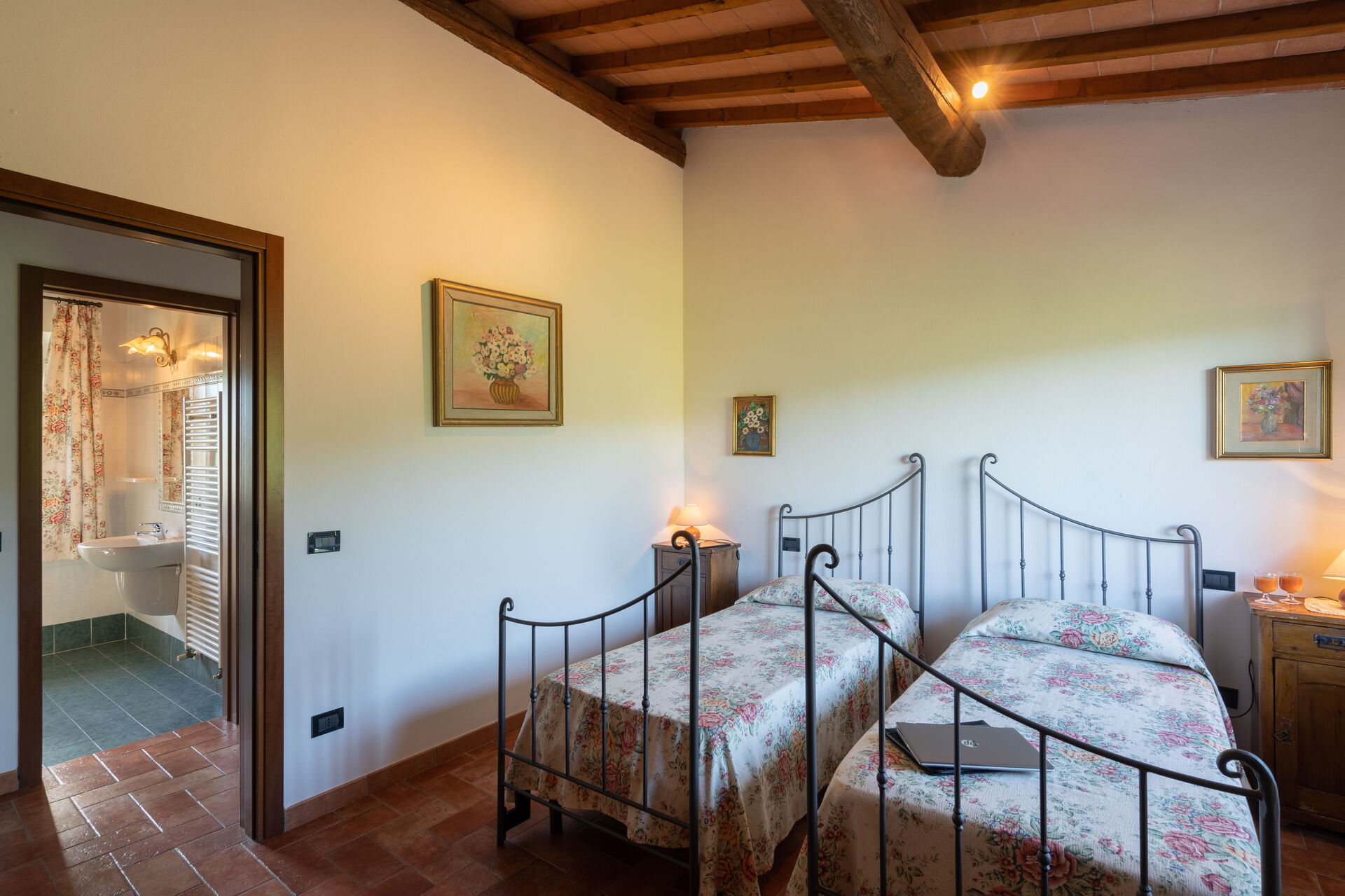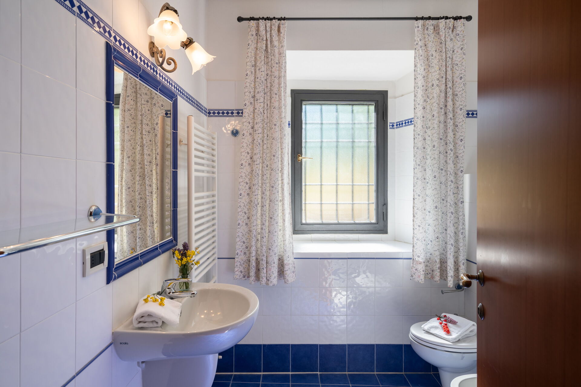 On the first floor: 3 double bedrooms, one of them with ensuite bathroom with shower (toilet / bidet); 3 bedrooms with two single beds each, one of them with ensuite bathroom with shower (toilet / bidet); 2 bathrooms with shower (toilet / bidet); washing machine available.