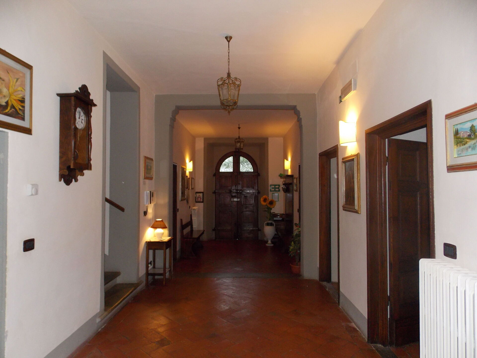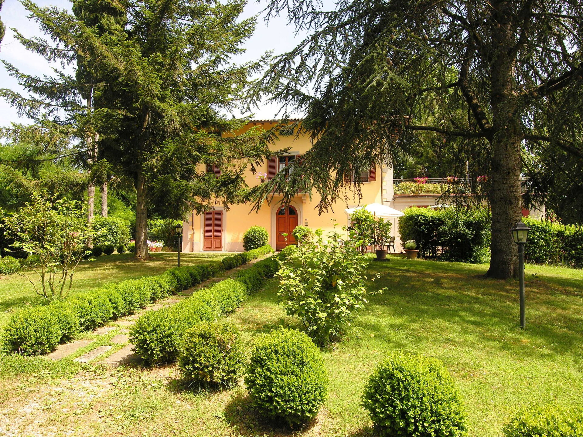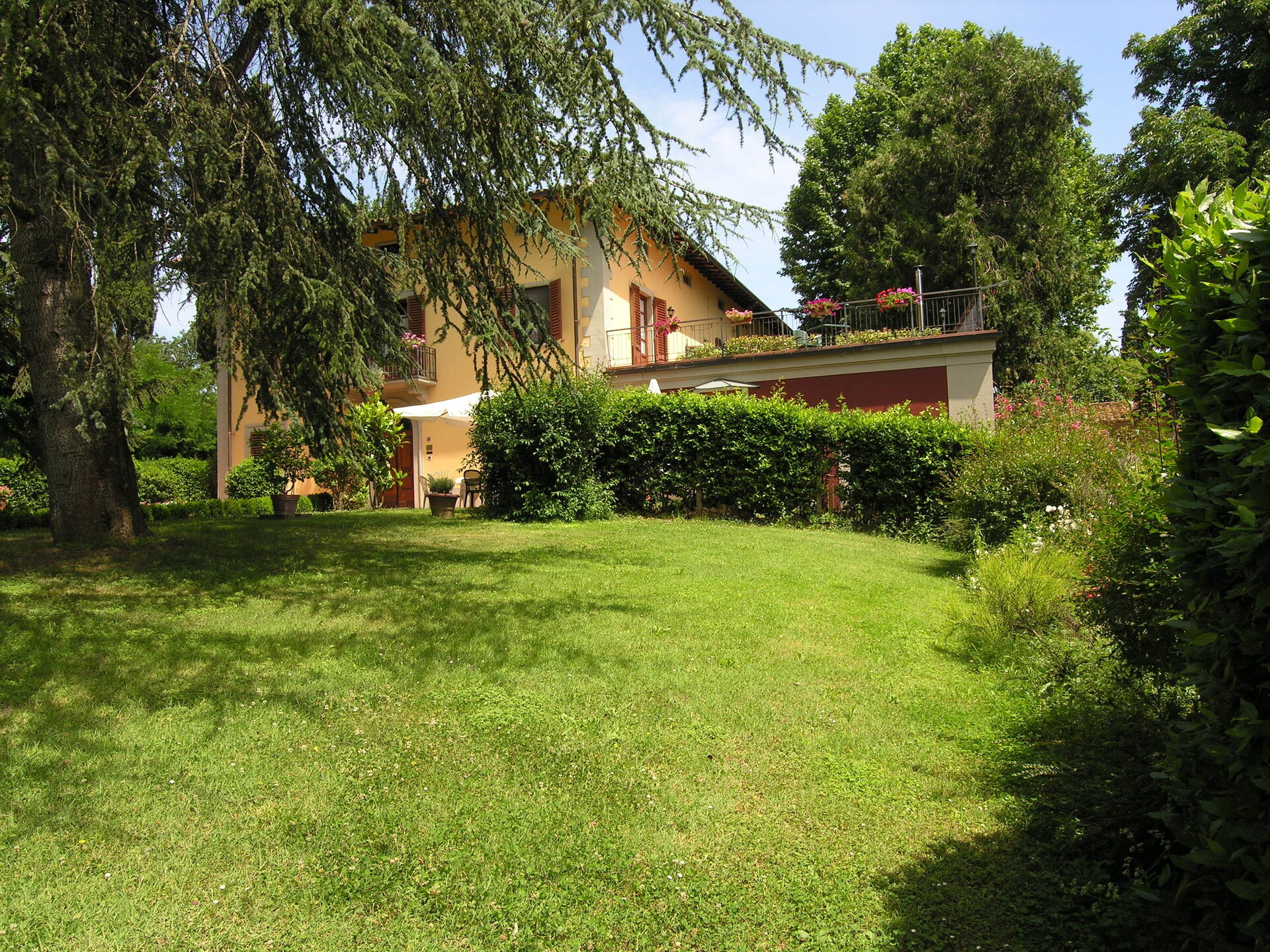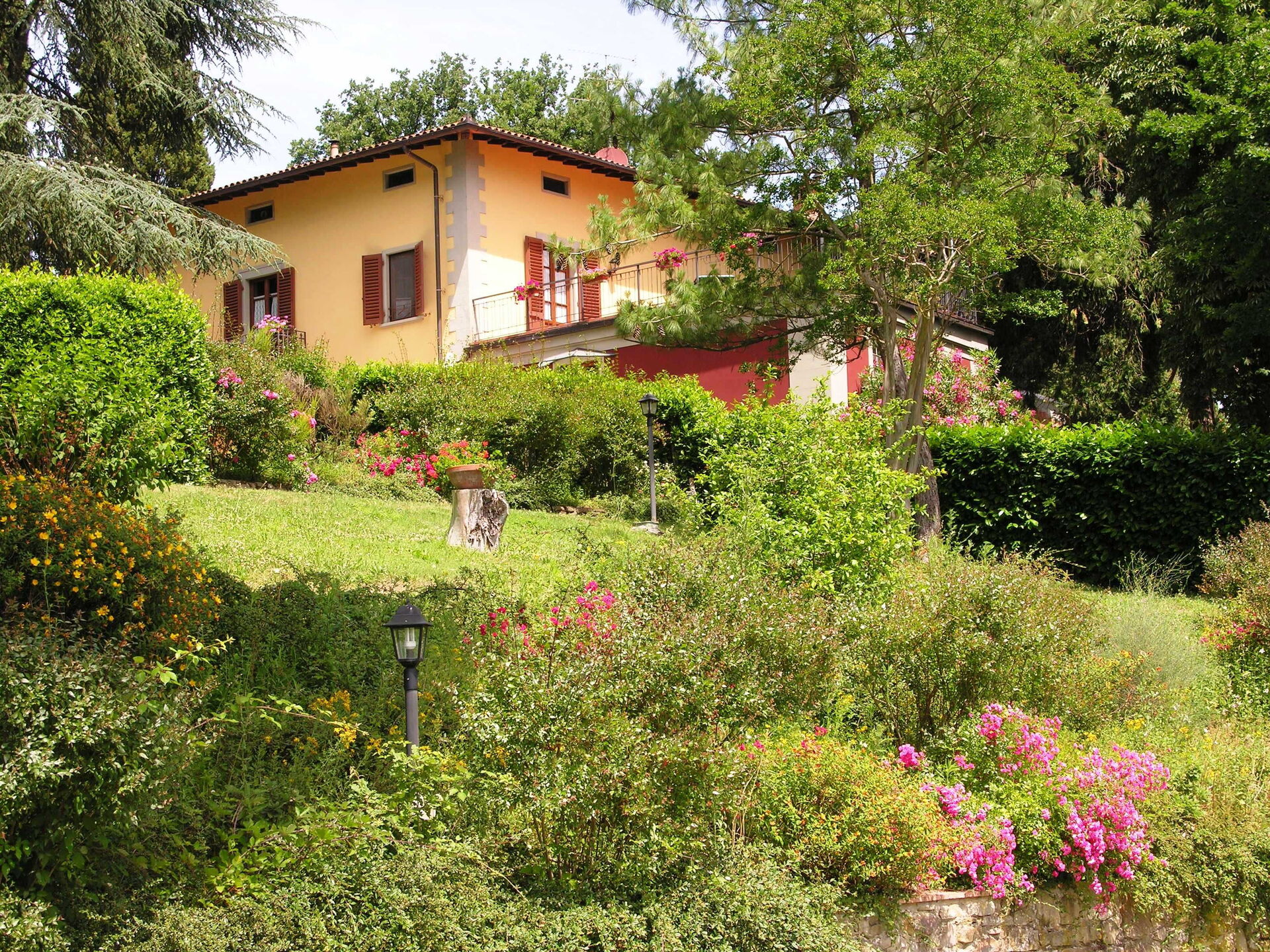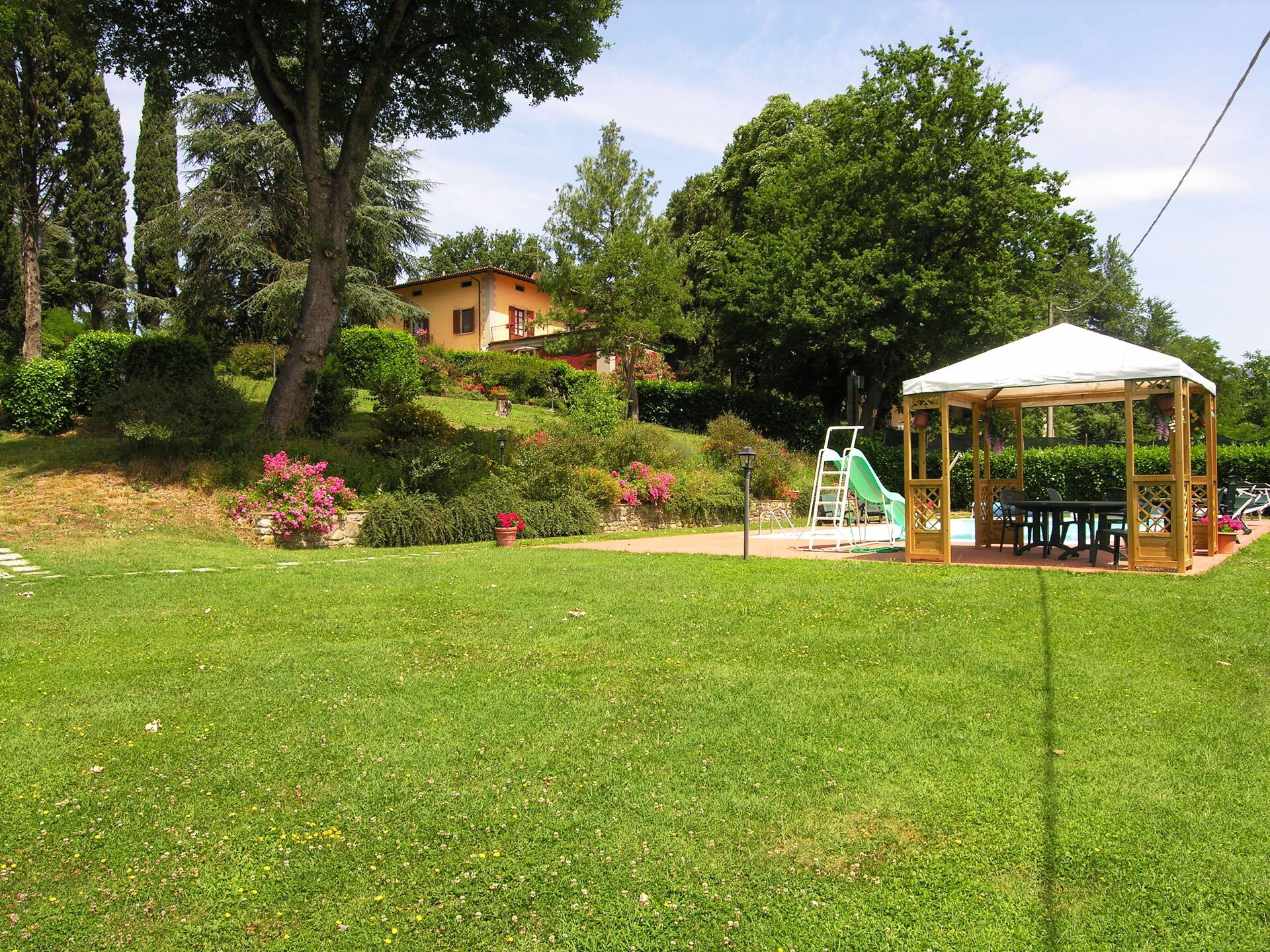 Typical Tuscan villa of about 500sqm. built in 1800 on two floors, immersed in green Mugello valley, a few kilometres from Florence, in a quiet location. The spacious interiors are cared for and furnished with rustic style. The villa is surrounded by a fenced park 4.000mq. with old trees and equipped with private swimming pool for guests (12m. x 6m. prof. 145cm.), gazebo, children's games. The property also has outdoor space (with barbecue) for outdoor dining. Wi-Fi. Private parking in the property.