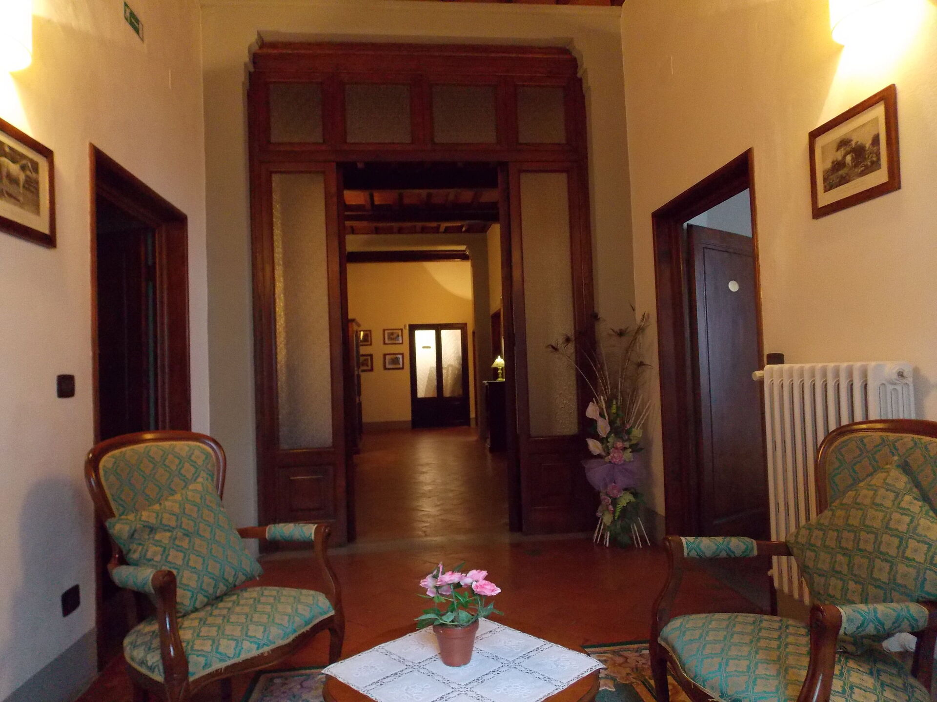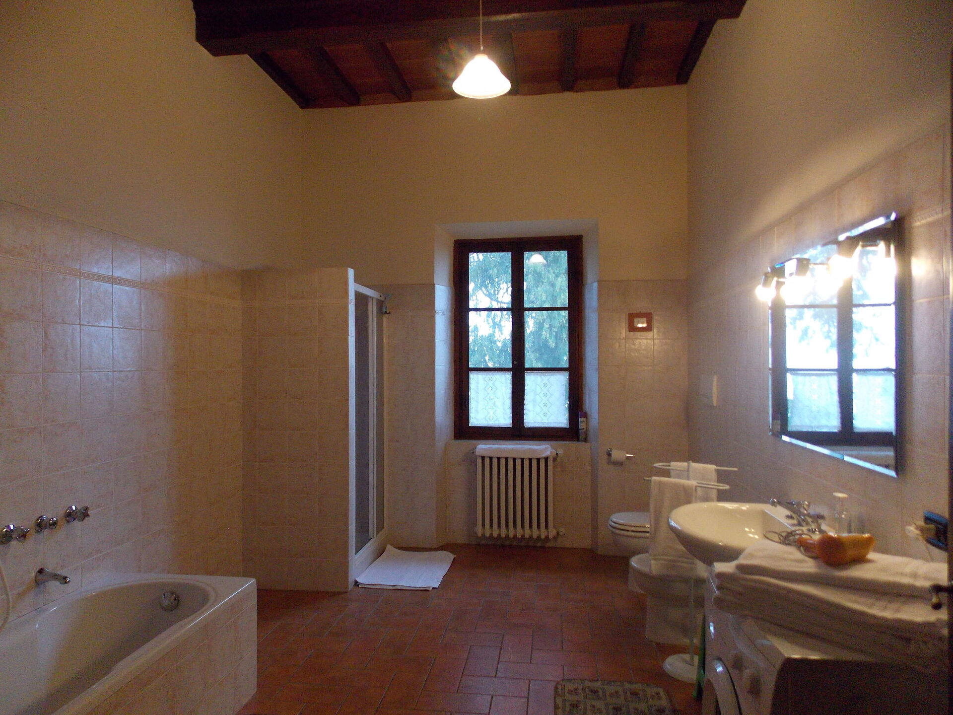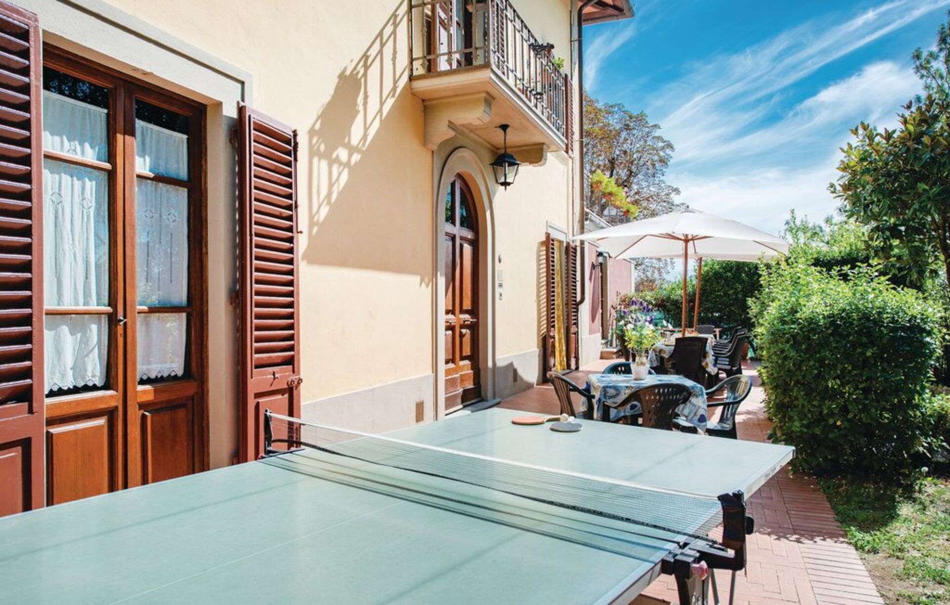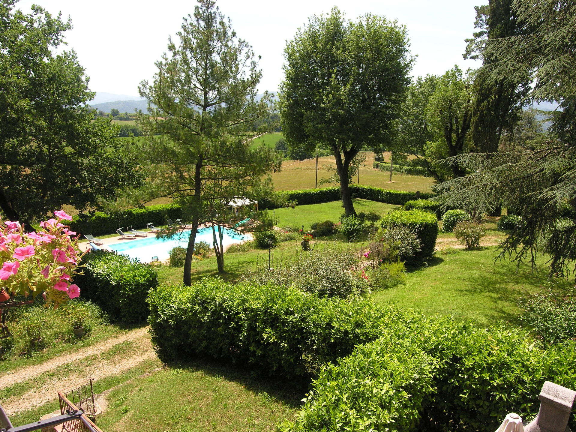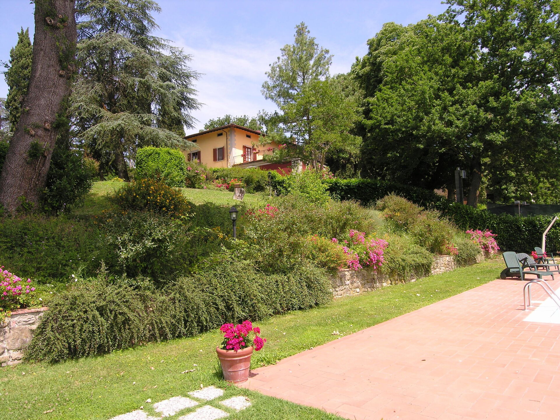 Typical Tuscan villa of about 500sqm. built in 1800 on two floors, immersed in green Mugello valley, a few kilometres from Florence, in a quiet location. The spacious interiors are cared for and furnished with rustic style. The villa is surrounded by a fenced park 4.000mq. with old trees and equipped with private swimming pool for guests (12m. x 6m. prof. 145cm.), gazebo, children's games. The property also has outdoor space (with barbecue) for outdoor dining. Wi-Fi. Private parking in the property.