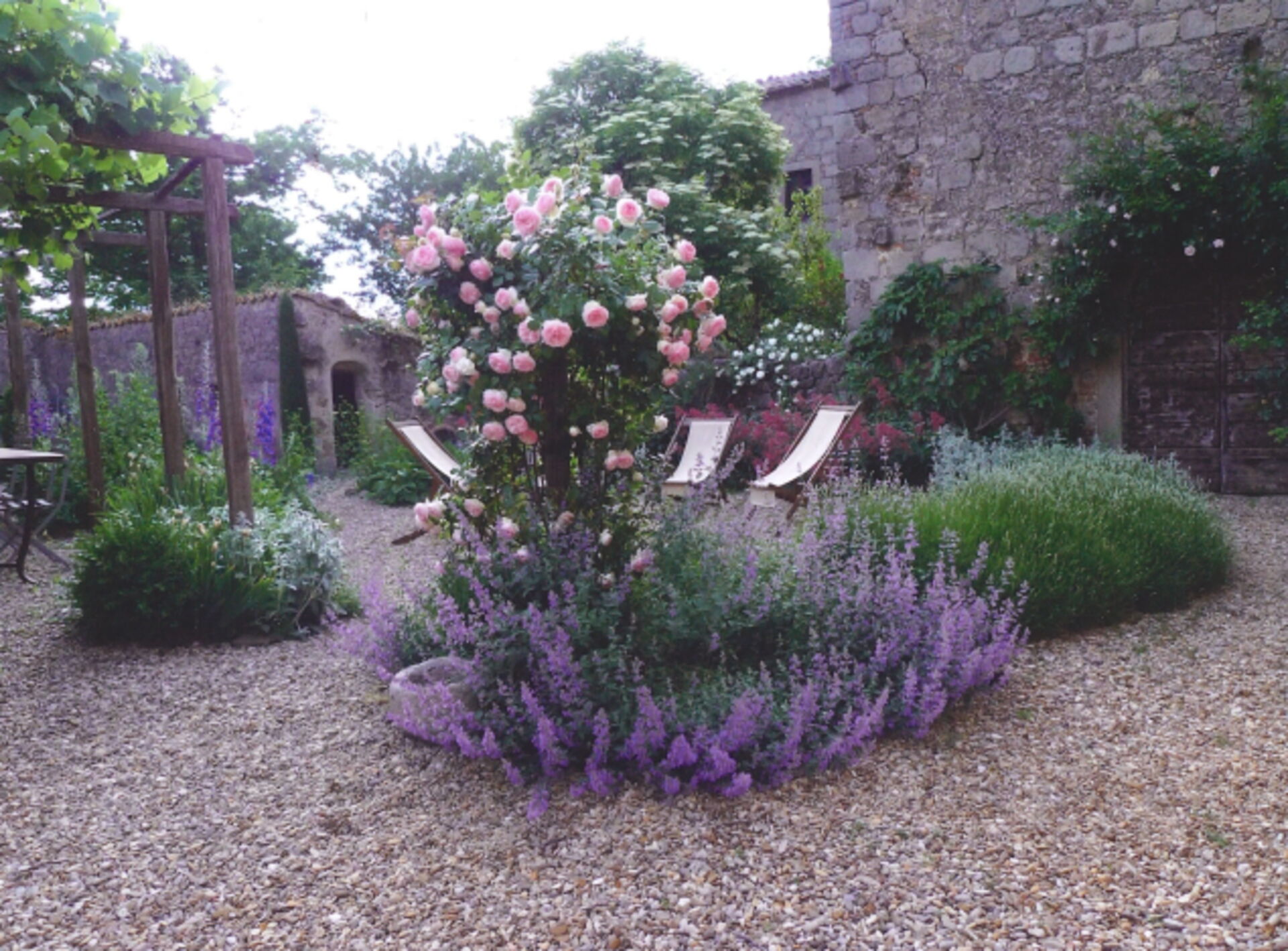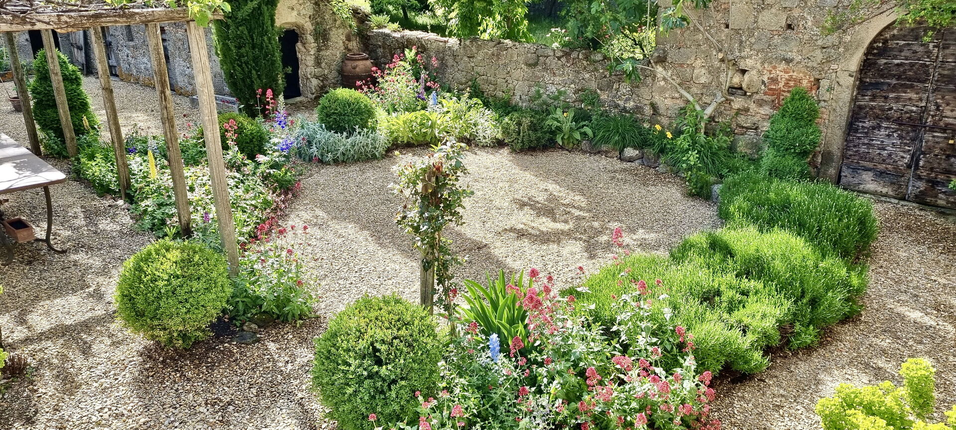 The walled-in garden, laid out with so much care, was designed by a famous British architect; here you will find also a pergola with table and chairs.