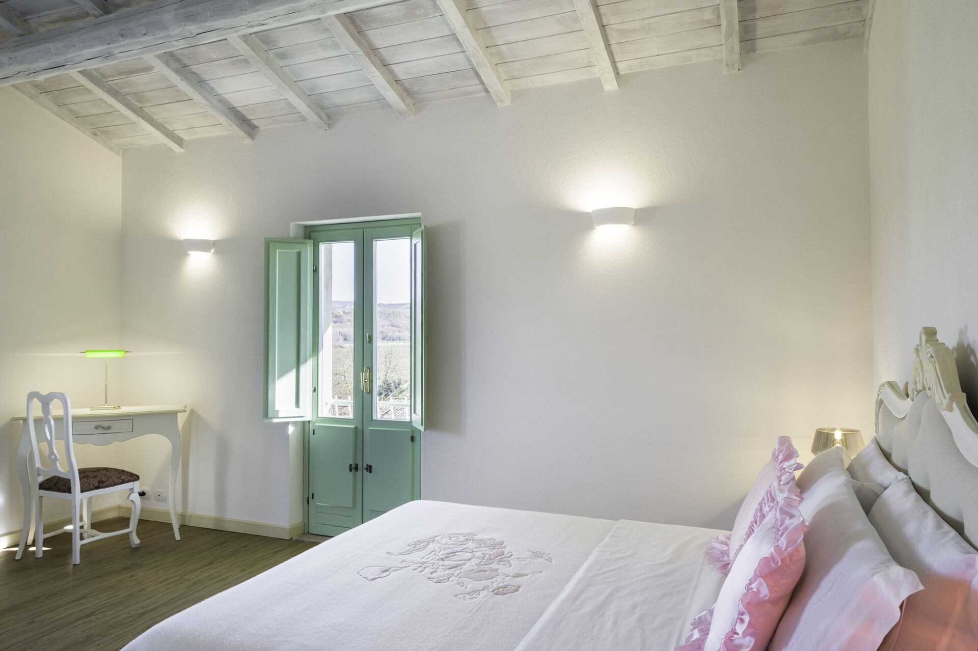 The smaller, very intimate farmhouse has a living room / entrance with kitchenette, anteroom, double bedroom with Jacuzzi located under a large window overlooking the countryside planted with wheat or sunflowers, en-suite bathroom with shower-bath Turkish.