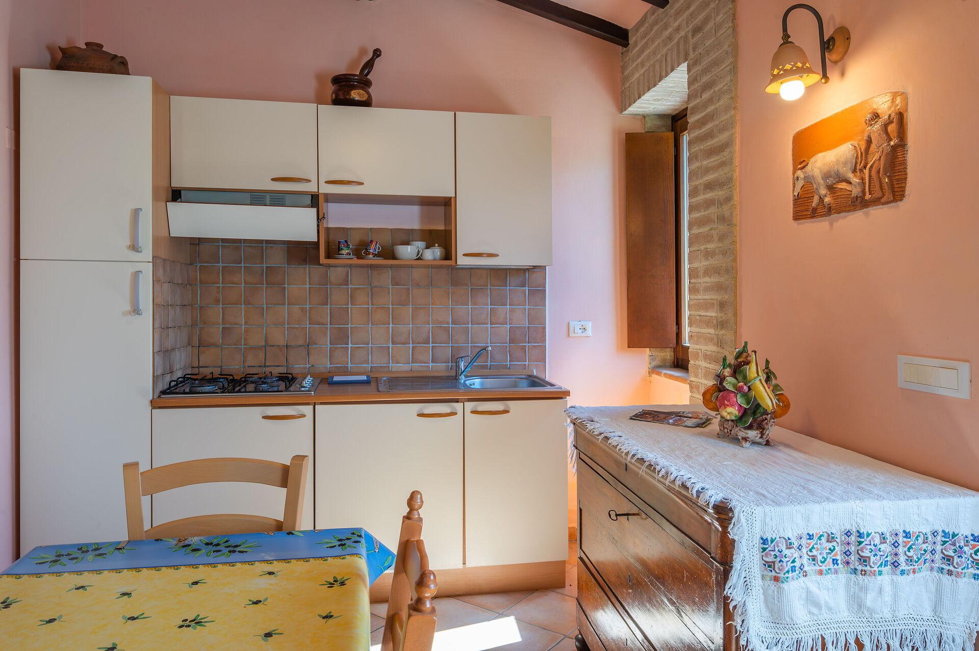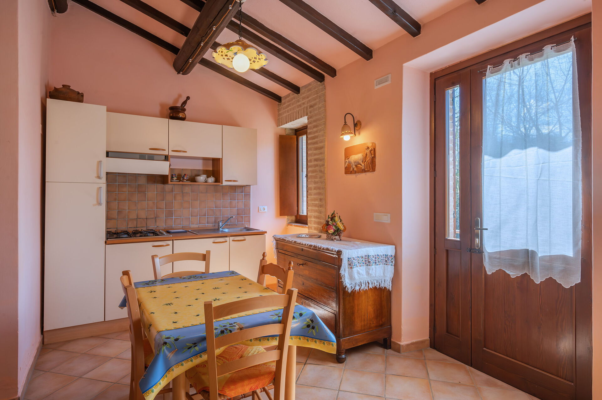 Air Conditioning, Oven, Fridge, WiFi Internet, Double Bed, Italian Coffee Machine, Dining Table, Television, Exit to the garden, Exit to the terrace, Mosquito Net
