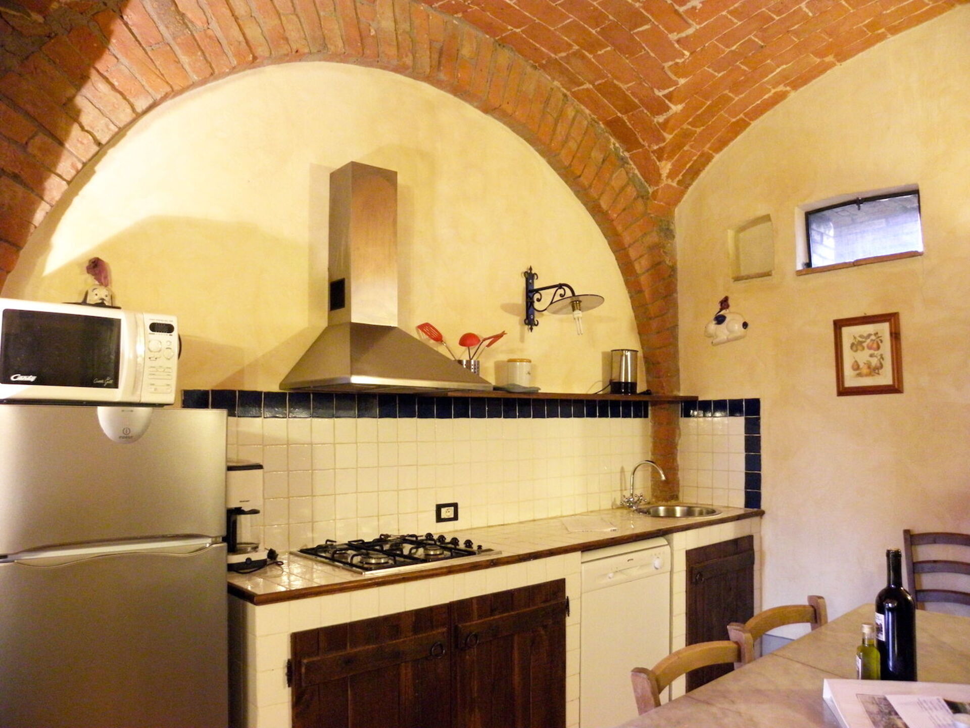 On the ground floor a flat consisting of: living room with fireplace and a kitchenette fully equipped with all appliances (dishwasher, hob, microwave oven, fridge and freezer). Two large double bedrooms and a third room with 2 beds obtained in a characteristic loft. A bathroom with shower and a service bathroom complete the flat.