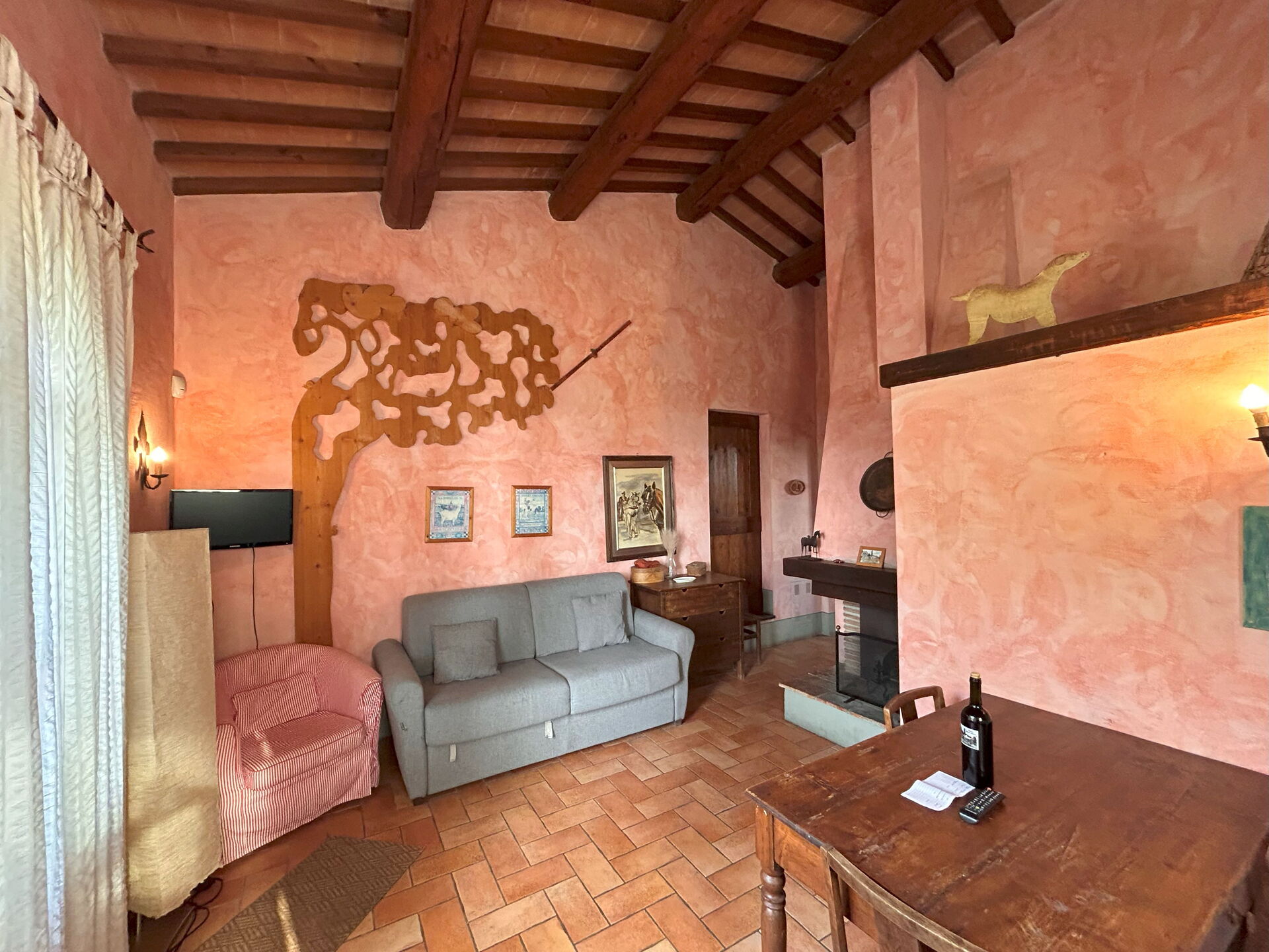 The flat is in a rural stone house and has been renovated and tastefully furnished in the Umbrian style. It consists of a living room with a sofa bed, a fireplace, and a kitchenette fully equipped with all appliances (dishwasher, hob, microwave oven, fridge and freezer). A double bedroom and a bathroom with shower complete the flat. A wi-fi line is present.