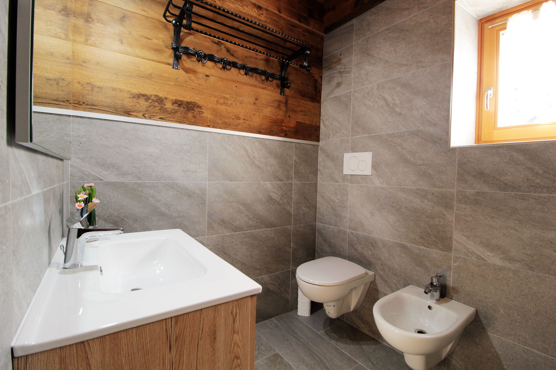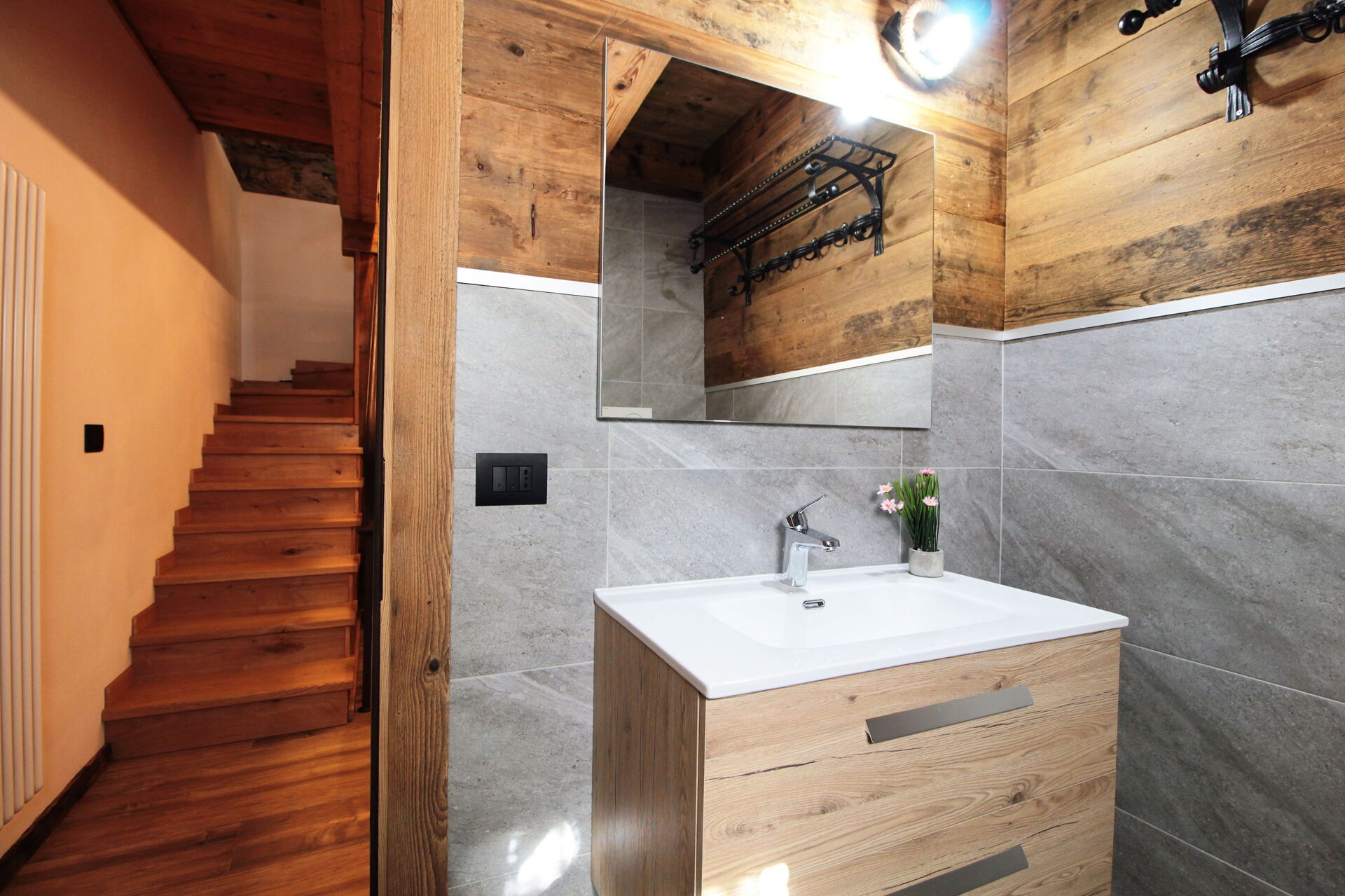 The chalet is structured on two floors, although the way it is built, access is possible from both the ground floor and the first floor.
