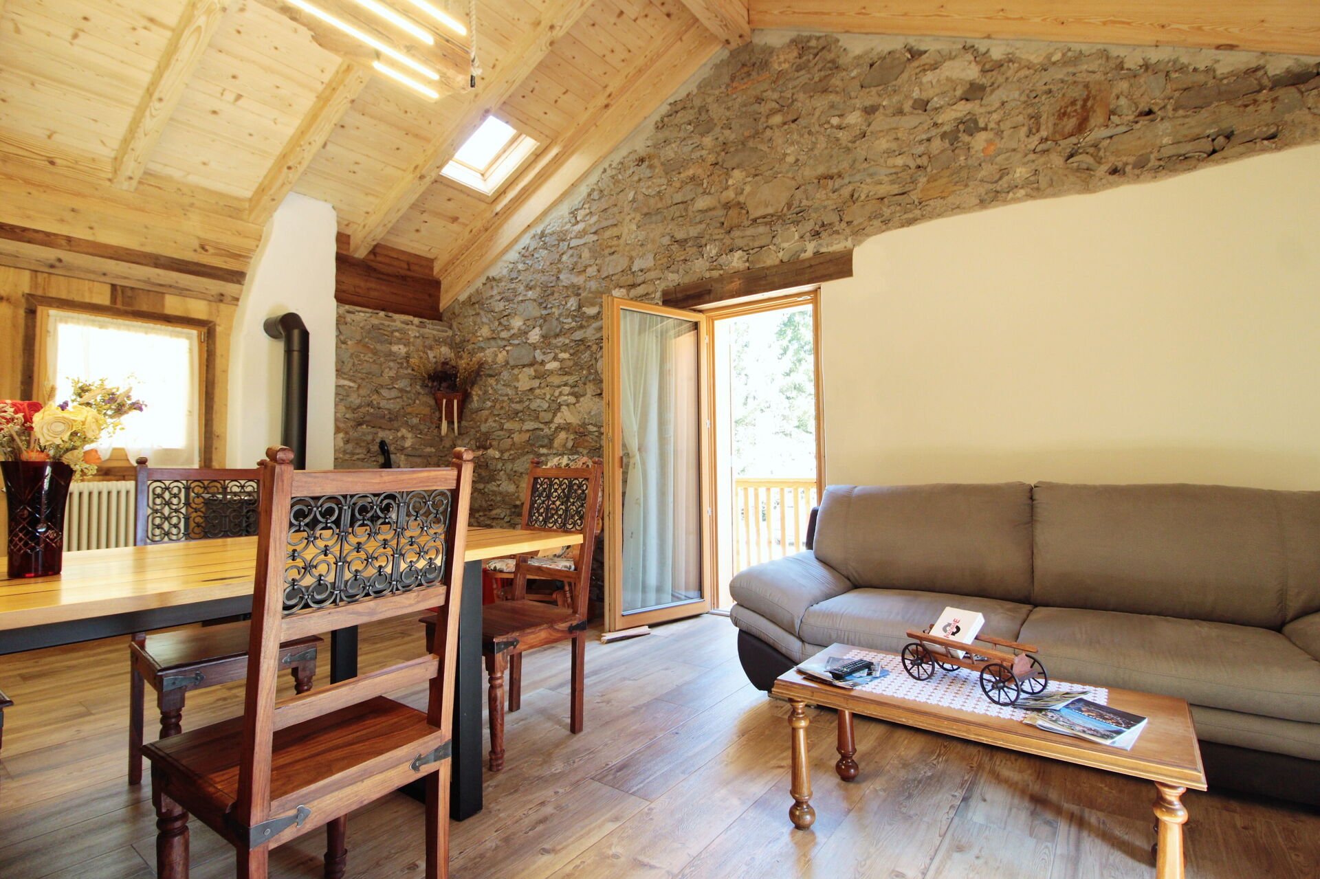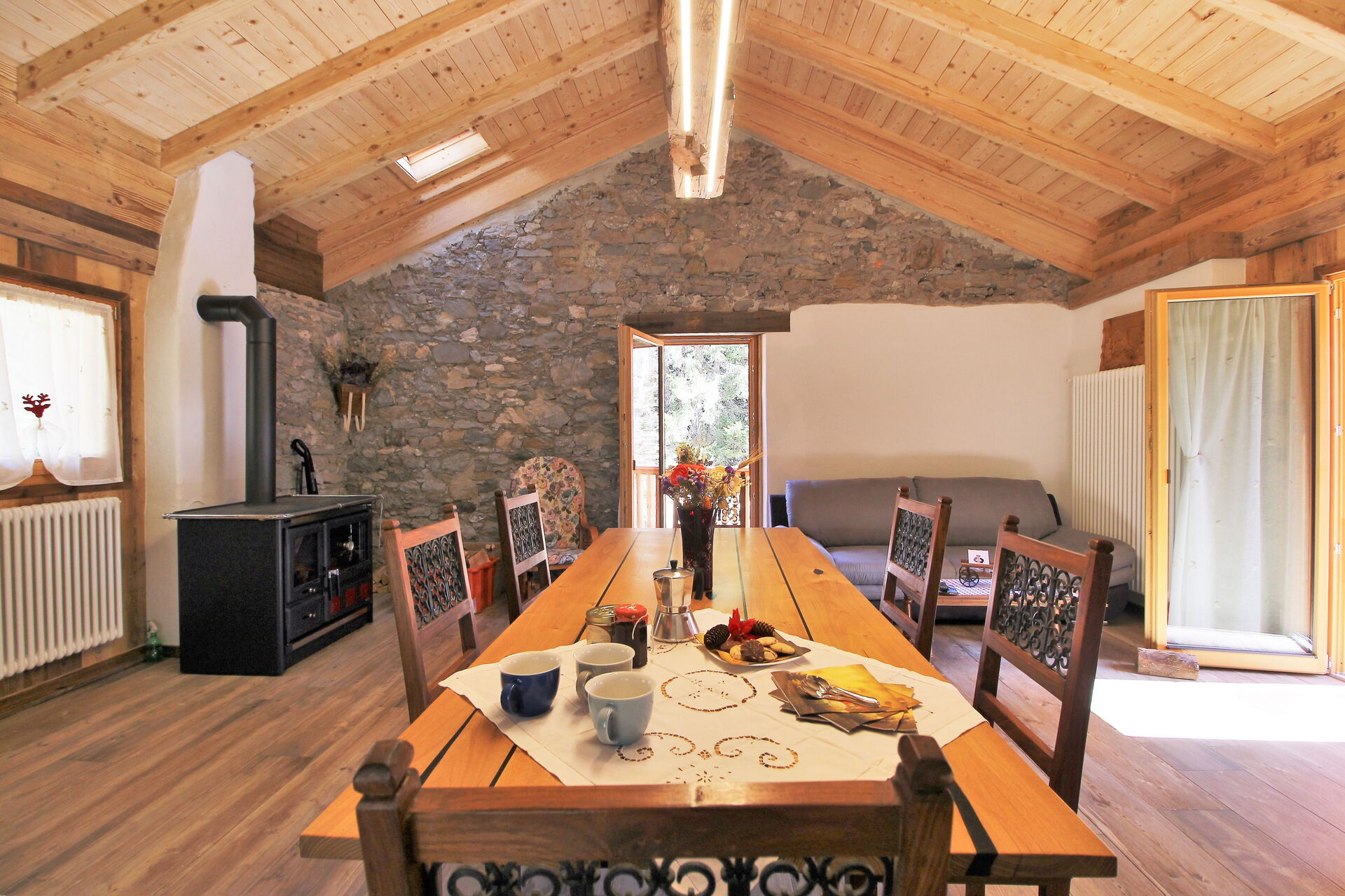 Well Equipped Kitchen, Sofa, Fridge, WiFi Internet, Dishwasher, Wood burning stove, Dining Table, Exit to the balcony