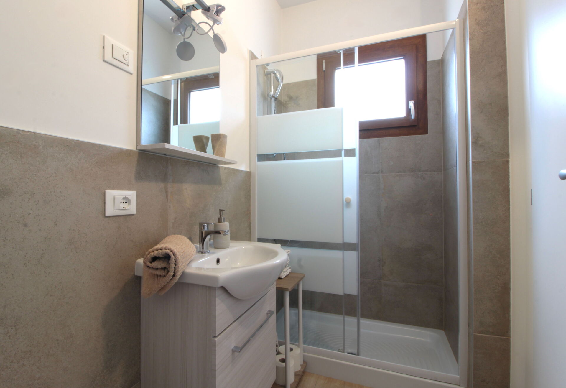 A spacious 30 sqm furnished terrace, exclusively for guests, is equipped with a dining table and is perfect for enjoying dinner under the stars with a glass of Prosecco.