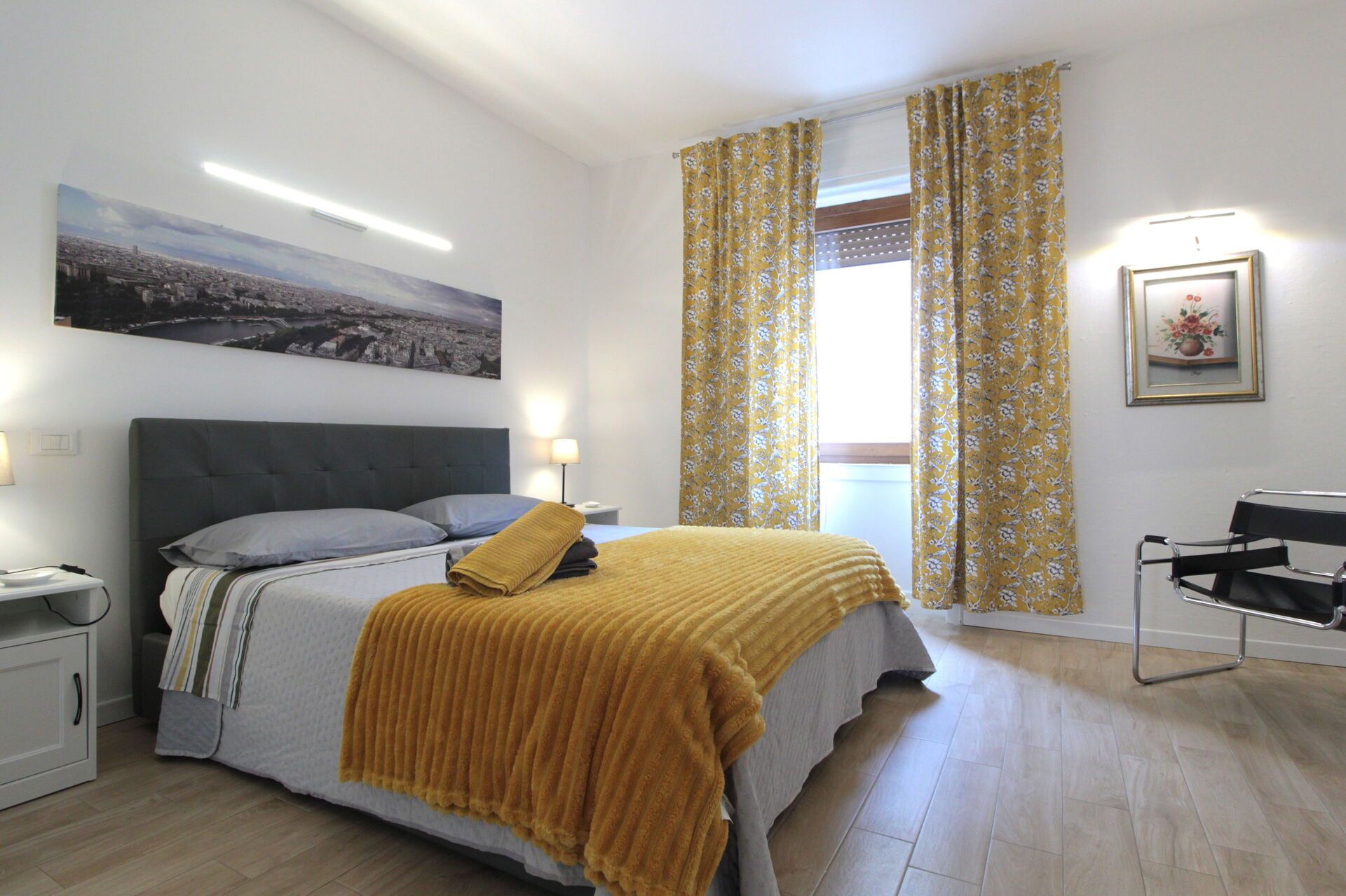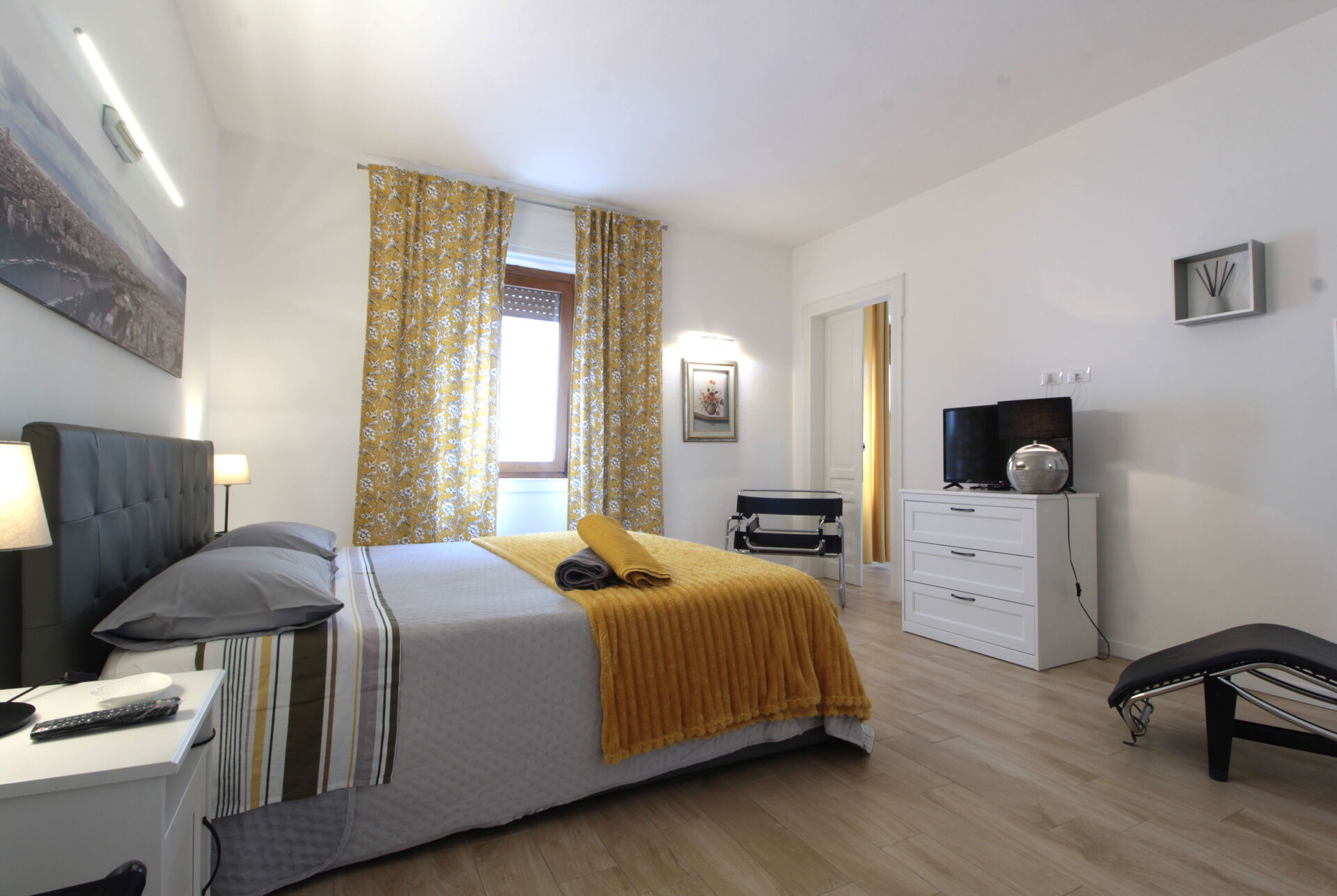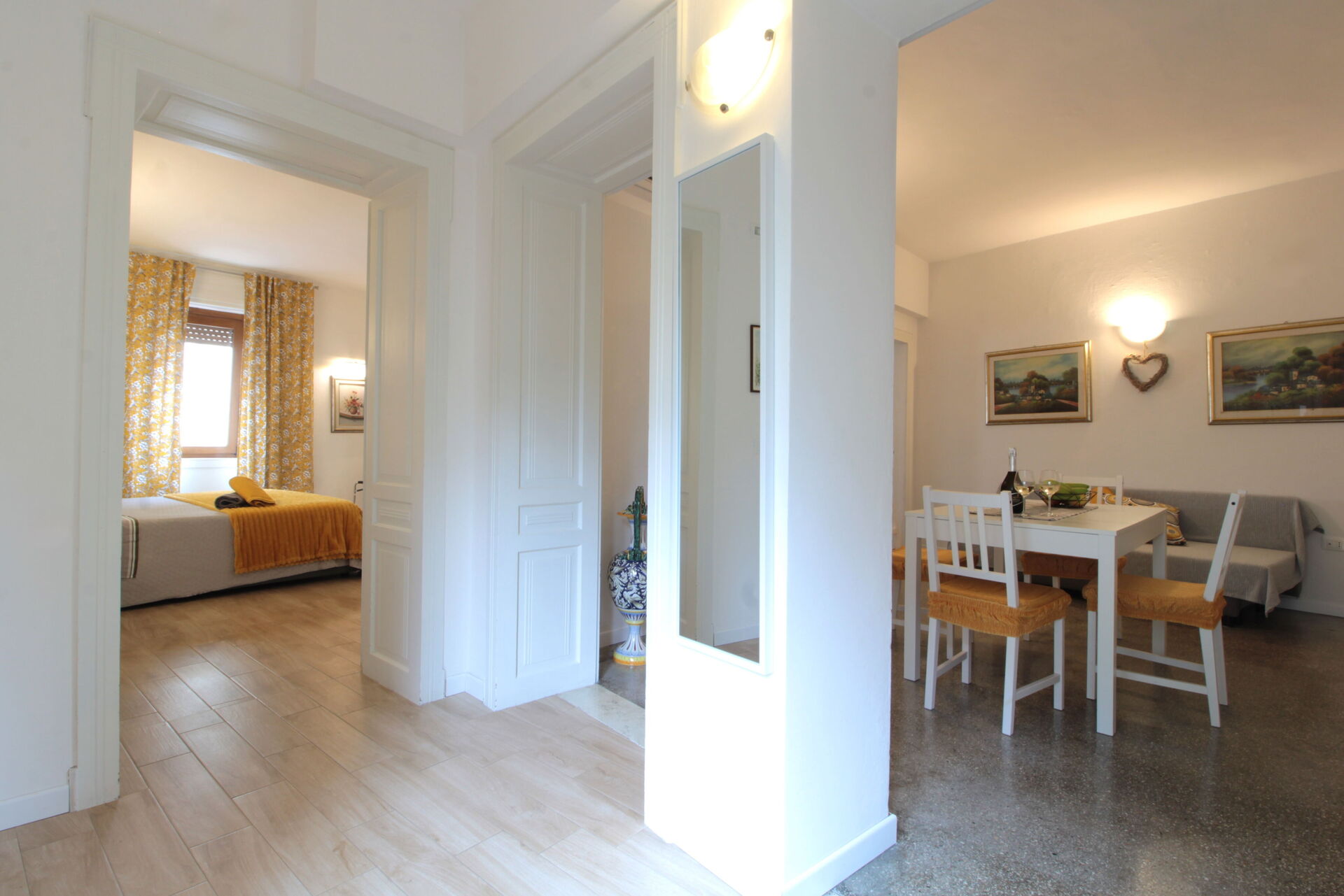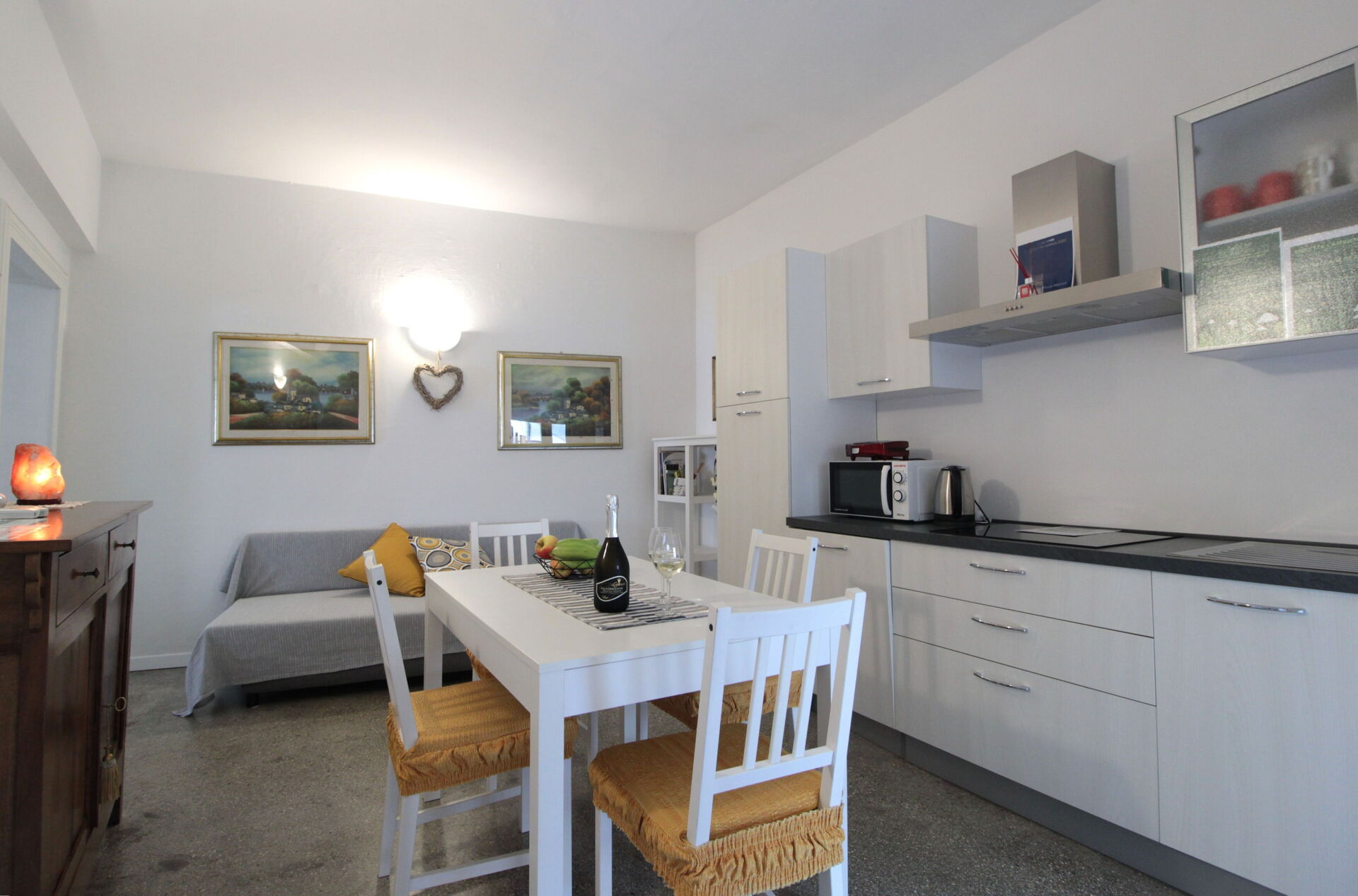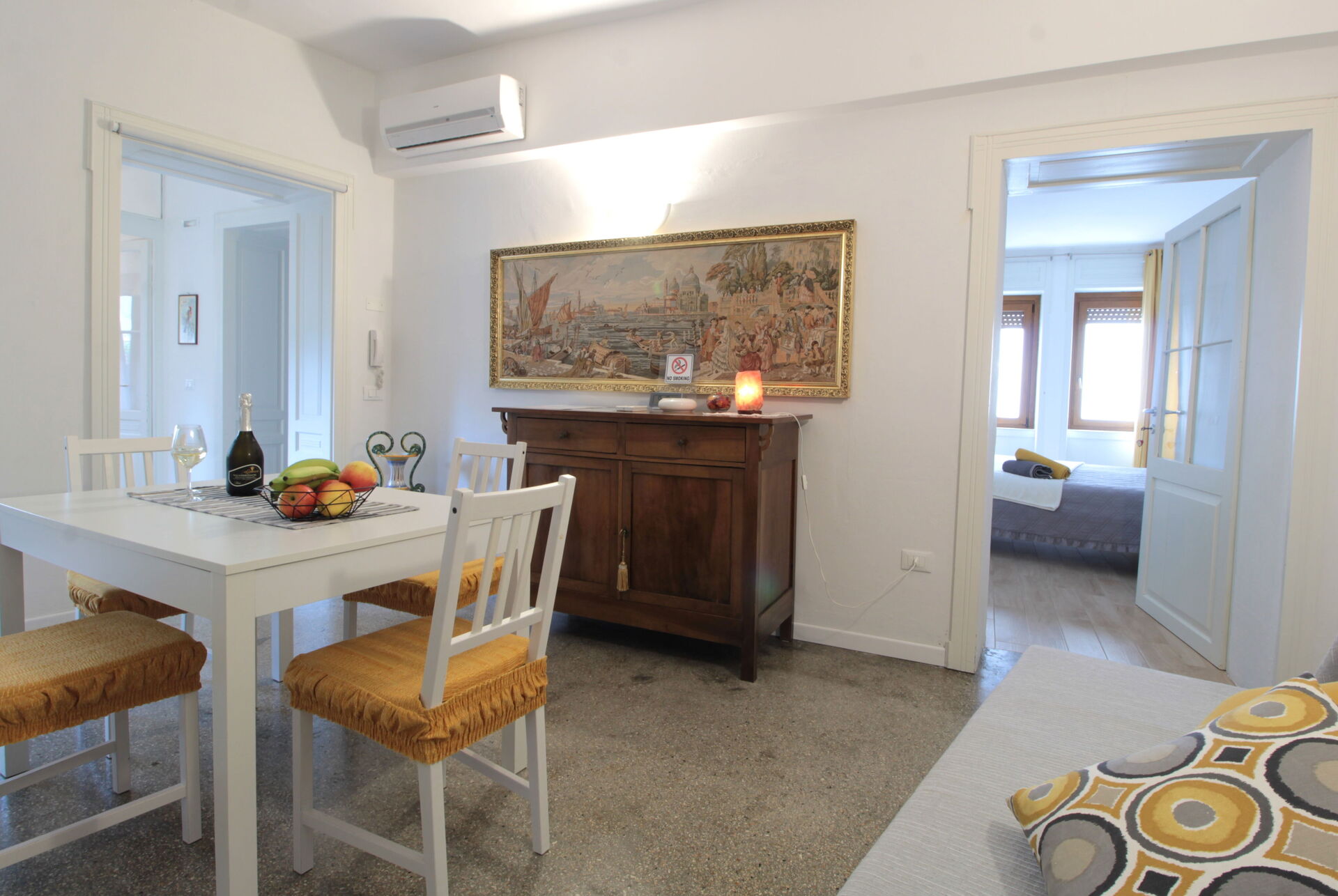 The apartment is located on the first floor of a late 17th-century building, recently renovated and accessible via a staircase. The furnishings are modern, and the apartment is fully equipped with everything you may need for your stay: a fully equipped kitchen with refrigerator, microwave, dishwasher, toaster, kettle, and coffee machine. It consists of a spacious double bedroom, a second room dedicated to a small Gym, a living room with kitchen, and a bathroom.